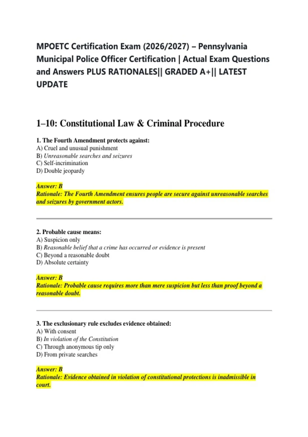 MPOETC Certification Exam (2026/2027) – Pennsylvania