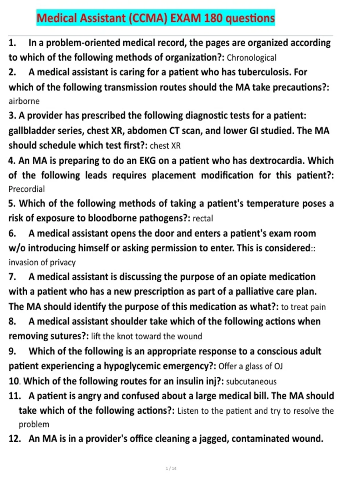 Medical Assistant (CCMA) EXAM 180 questions