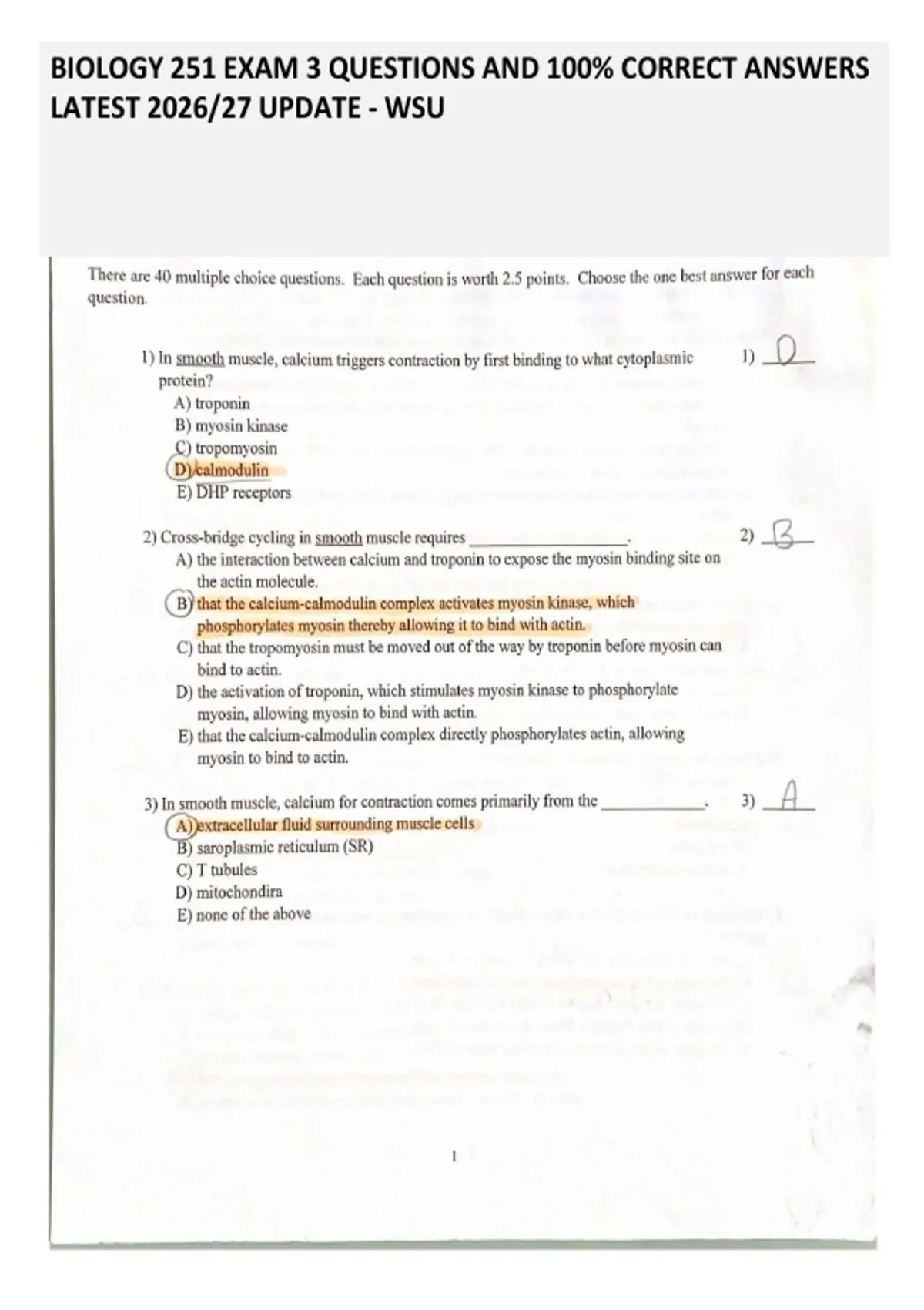 BIOLOGY 251 EXAM 1,2 3 & 4 QUESTIONS AND ANSWERS LATEST 2026/27 UPDATE - WSU PACKAGE DEAL