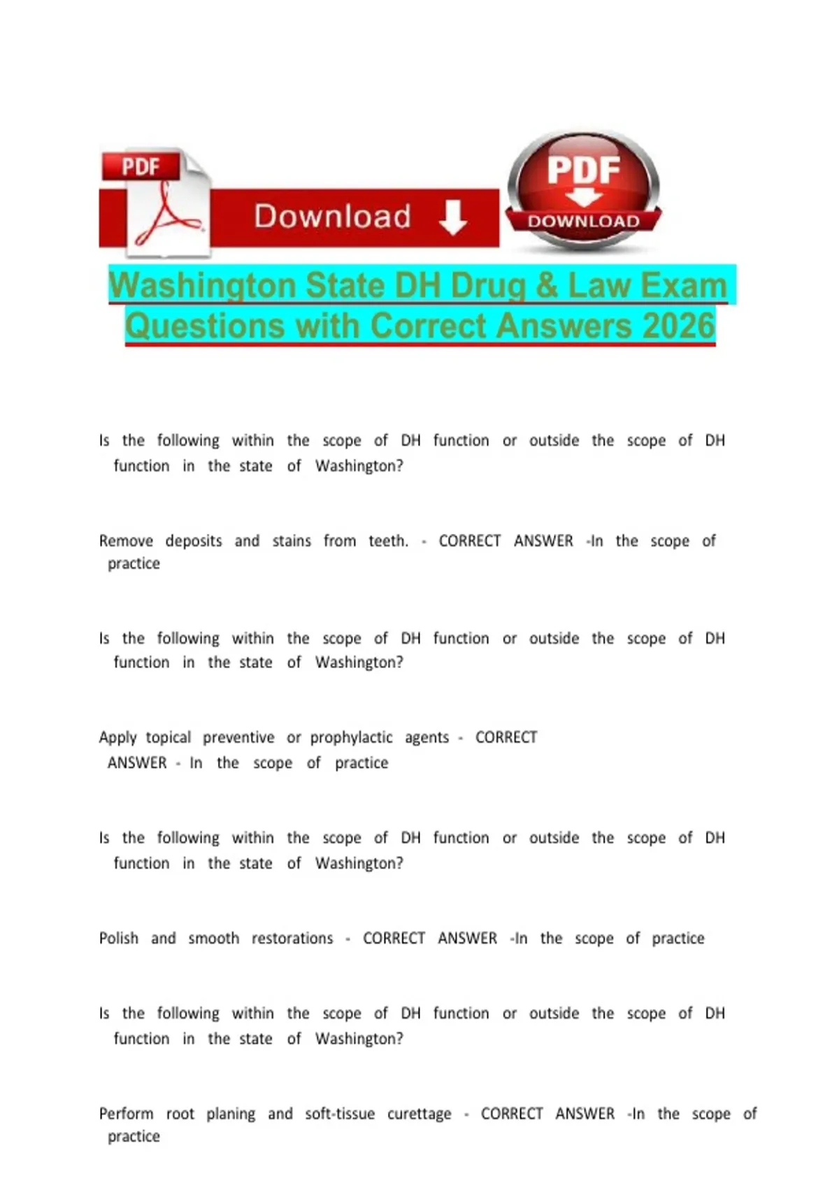 Washington State DH Drug & Law Exam