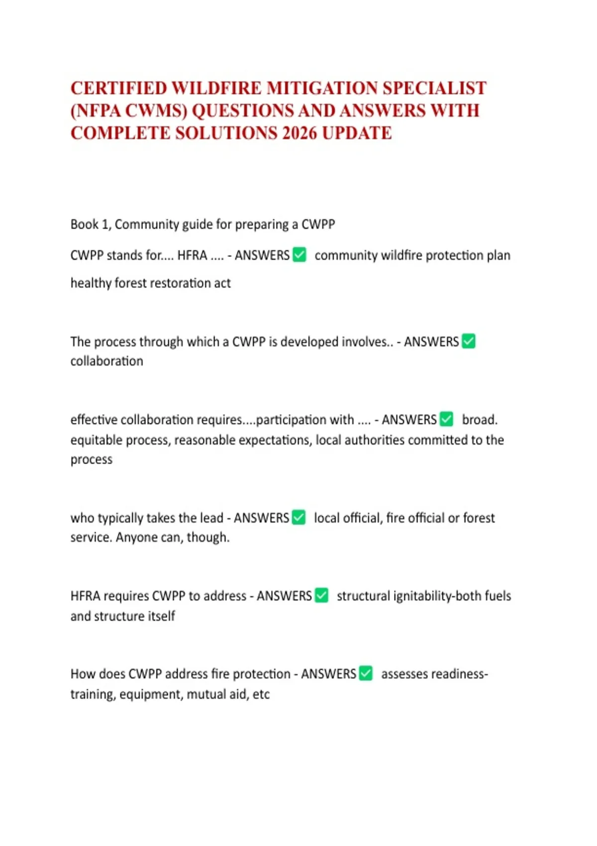 (NFPA CWMS) QUESTIONS AND ANSWERS WITH