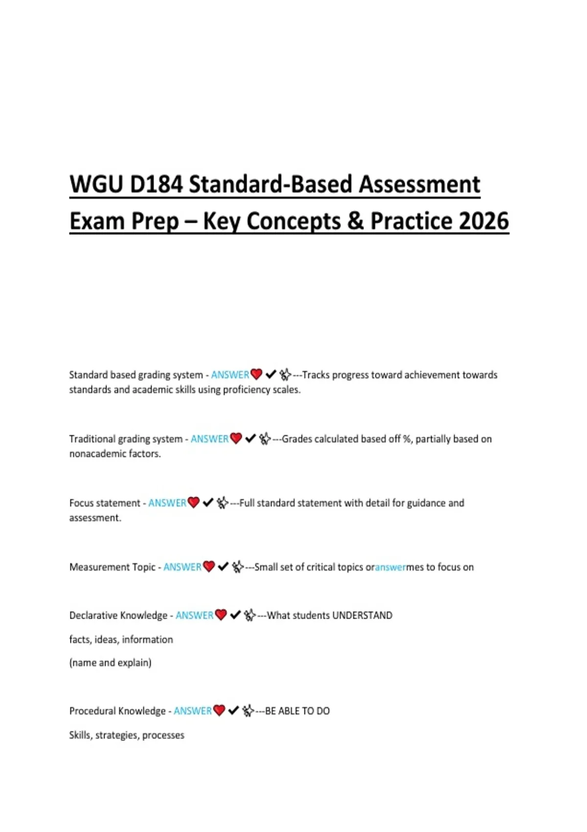 Standard based grading system - ANSWER ✔✨---Tracks progress toward achievement towards