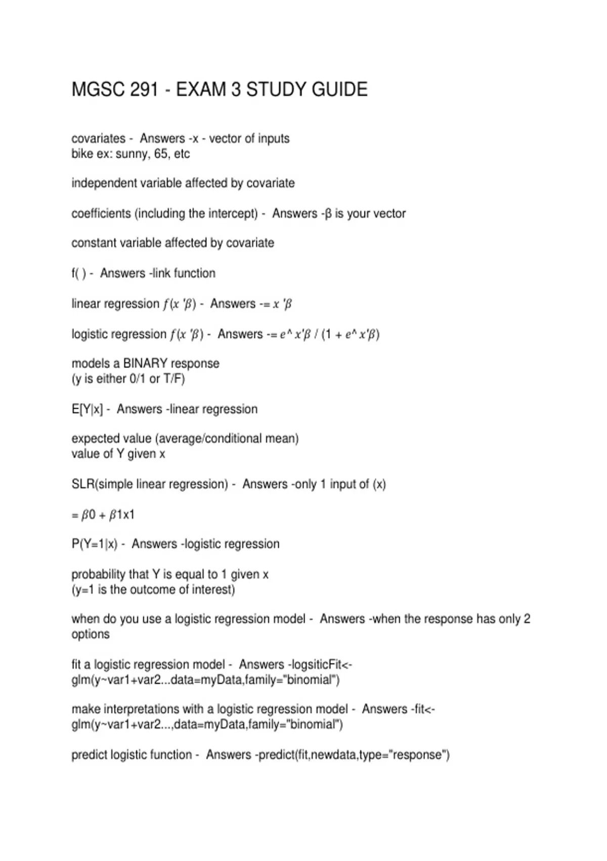 MGSC 291 - EXAM 3 STUDY GUIDE