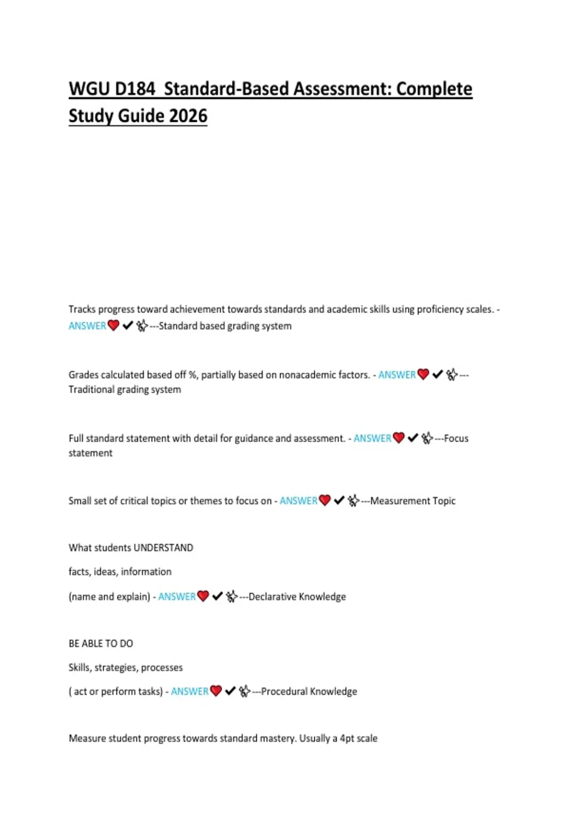 WGU D184 Standard-Based Assessment: Complete