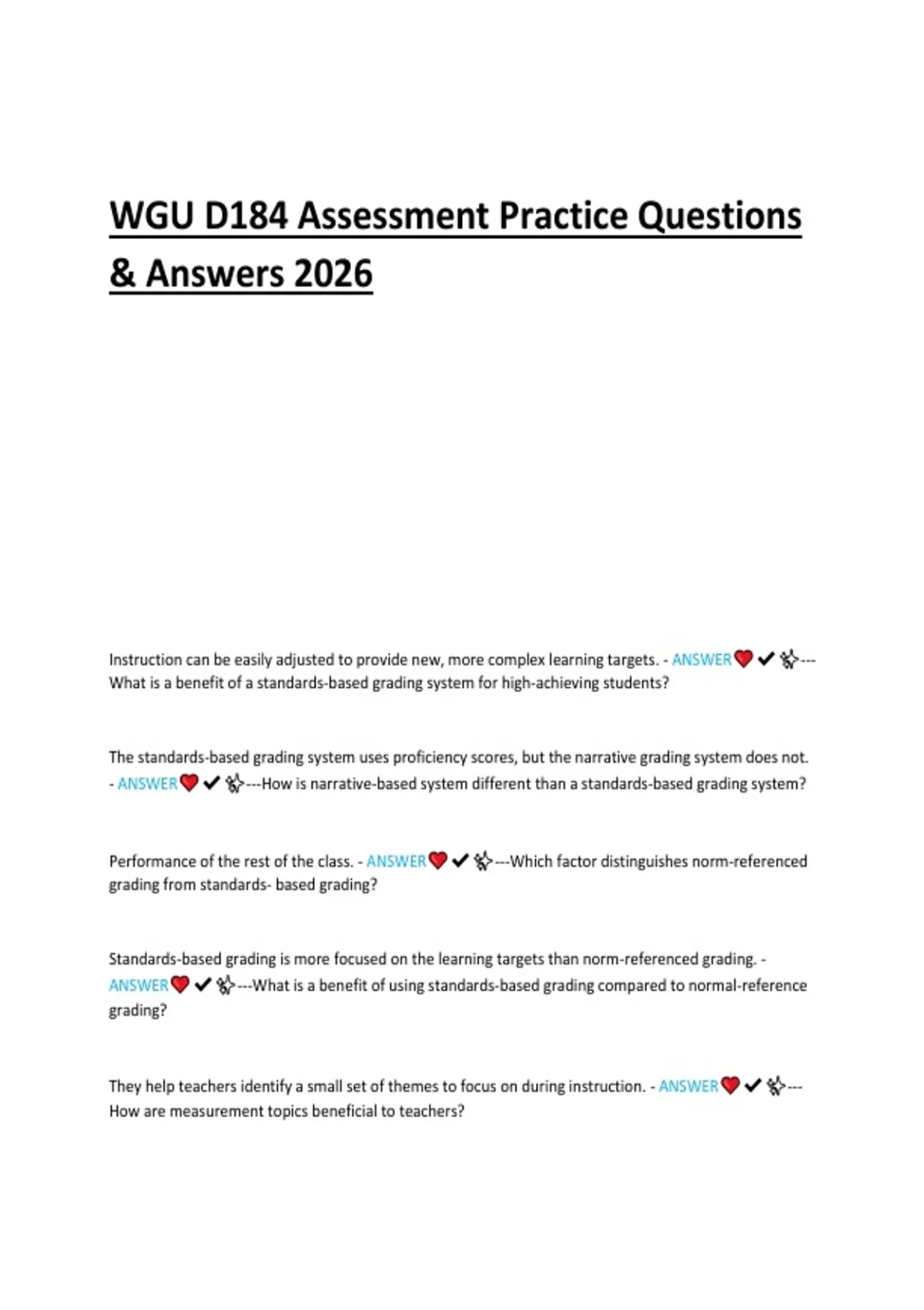 Prepare for WGU D184 with this 2026 guide of practice questions and answers. Covers standards-based assessment concepts, sample scenarios, and exam-focused strategies to boost your score.