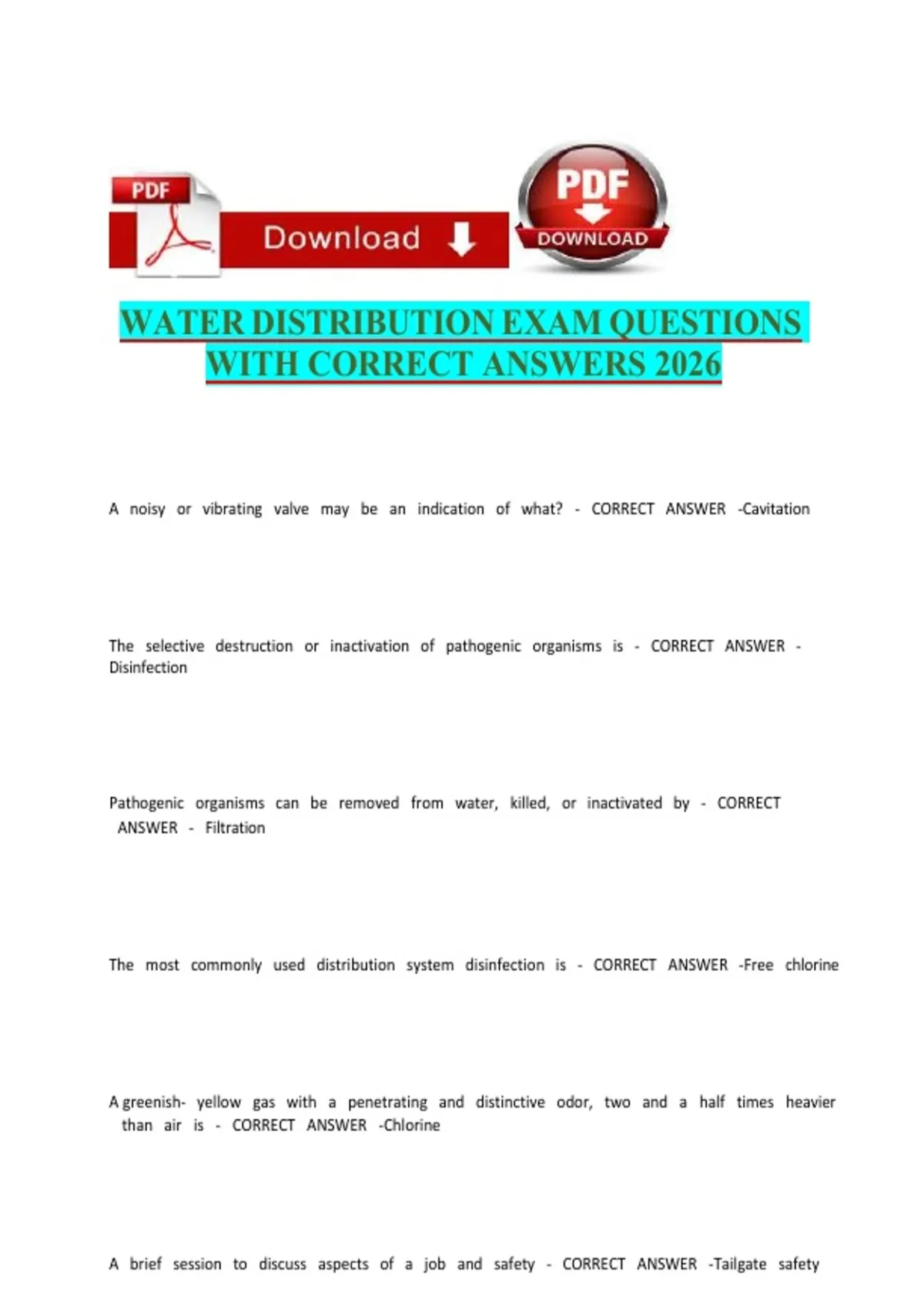 WATER DISTRIBUTION EXAM QUESTIONS WITH CORRECT ANSWERS 2026