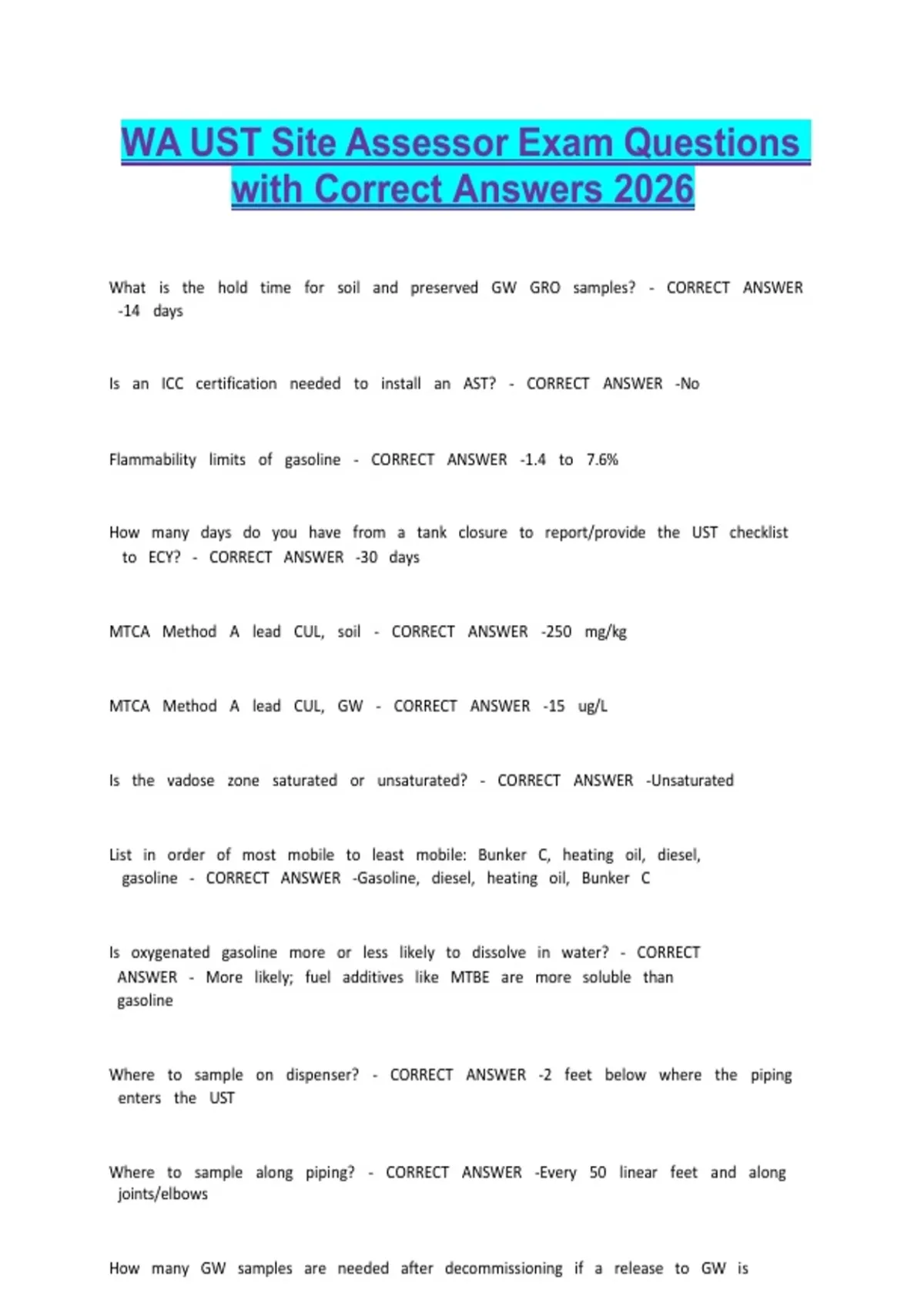 WA UST Site Assessor Exam Questions