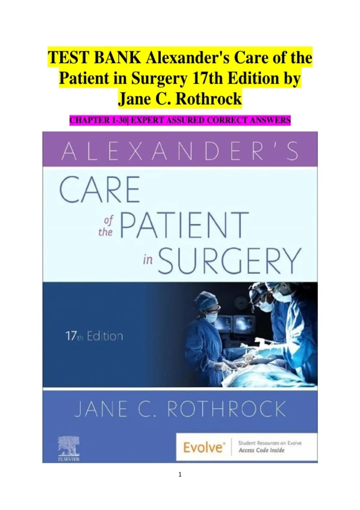 TEST BANK Alexander's Care of the