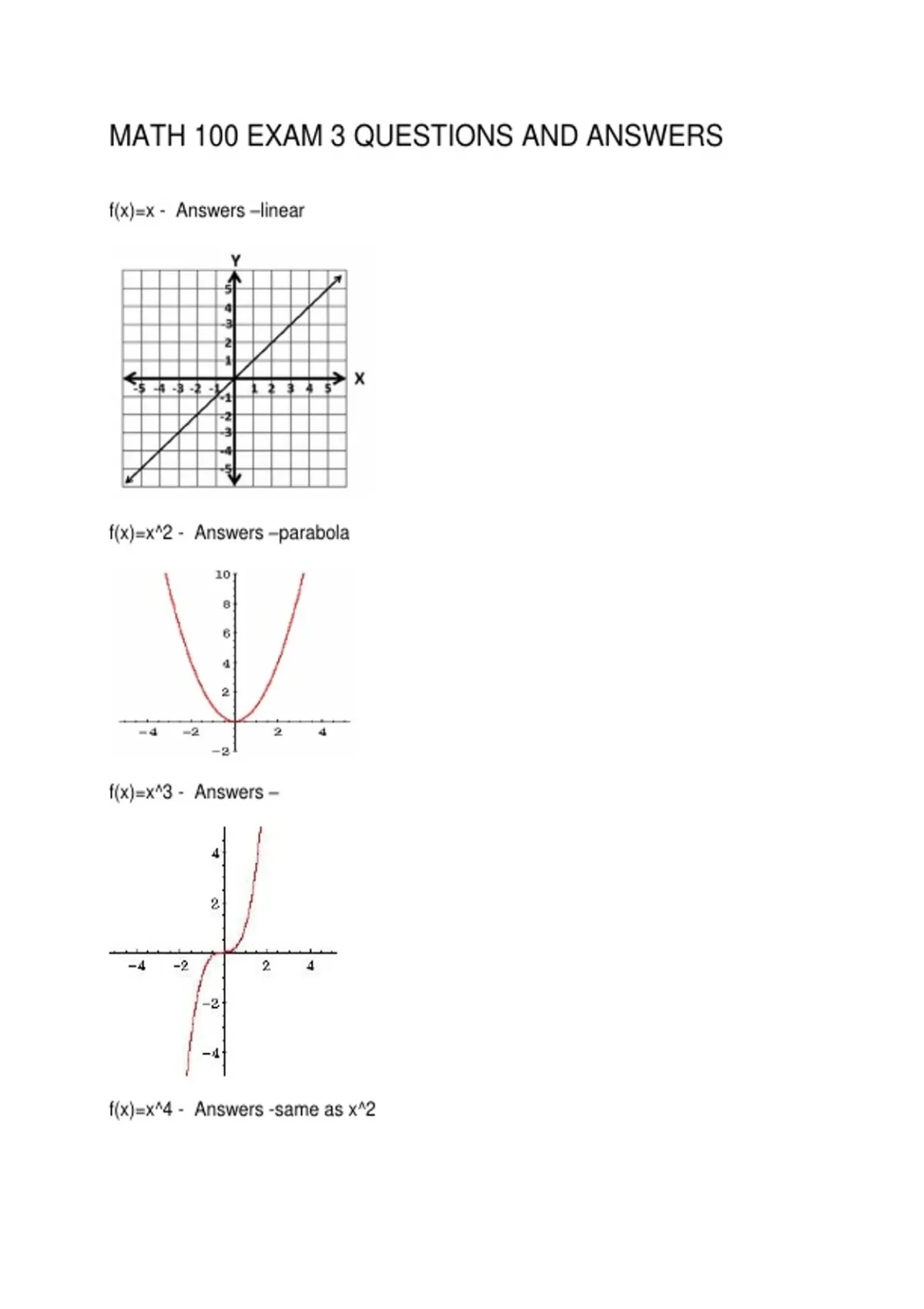 f(x)=x^4 - Answers -same as x^2