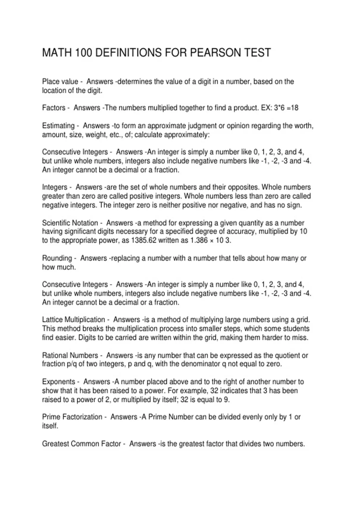 MATH 100 DEFINITIONS FOR PEARSON TEST