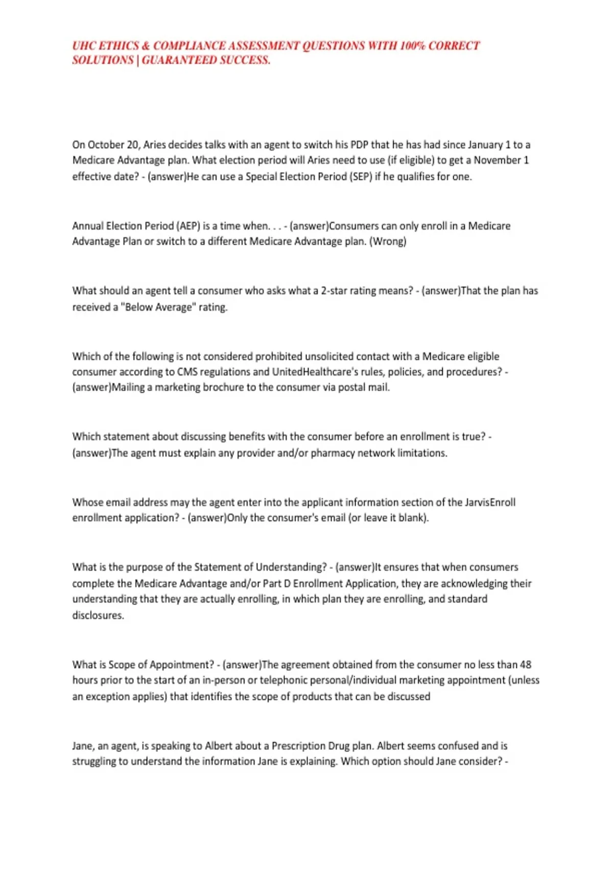 UHC ETHICS & COMPLIANCE ASSESSMENT QUESTIONS WITH 100% CORRECT SOLUTIONS | GUARANTEED SUCCESS.
