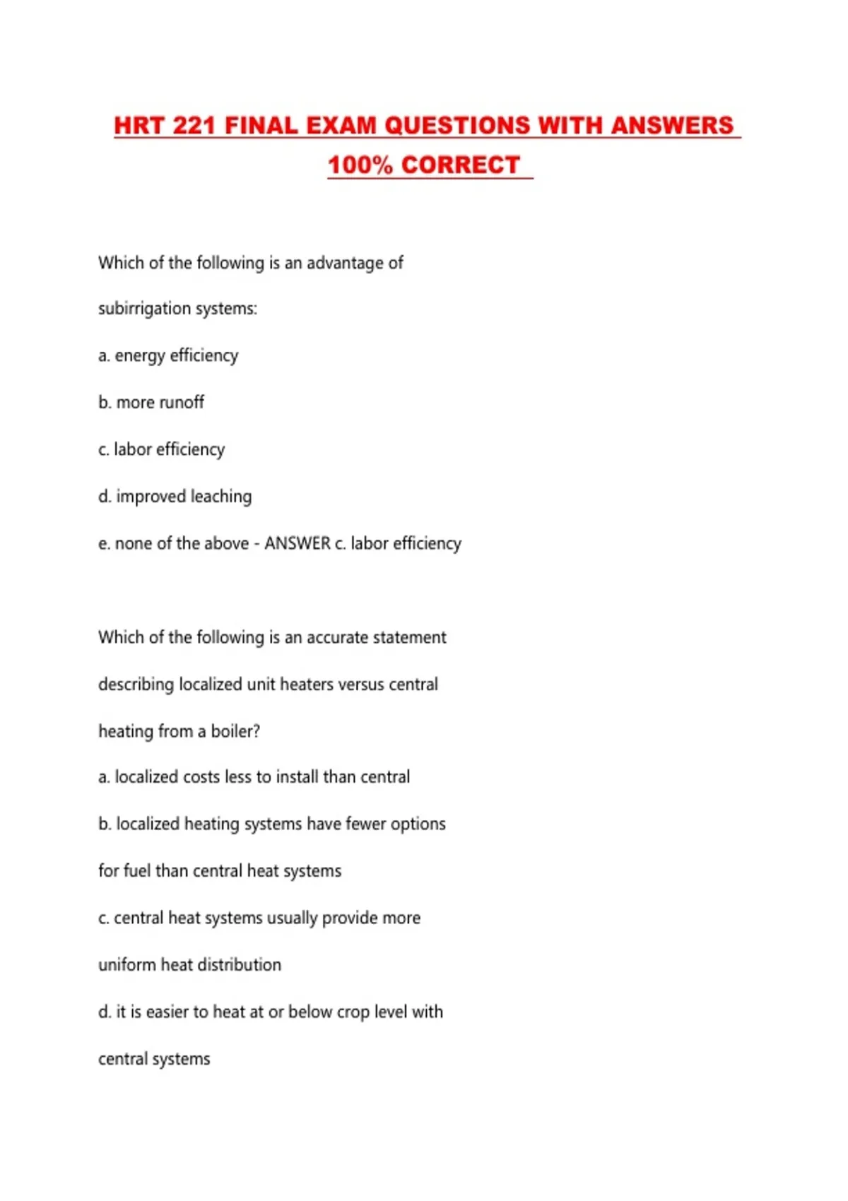 HRT 221 FINAL EXAM QUESTIONS WITH ANSWERS