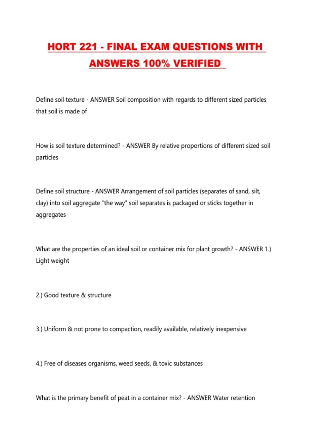 HORT 221 - FINAL EXAM QUESTIONS WITH ANSWERS 100% VERIFIED ...