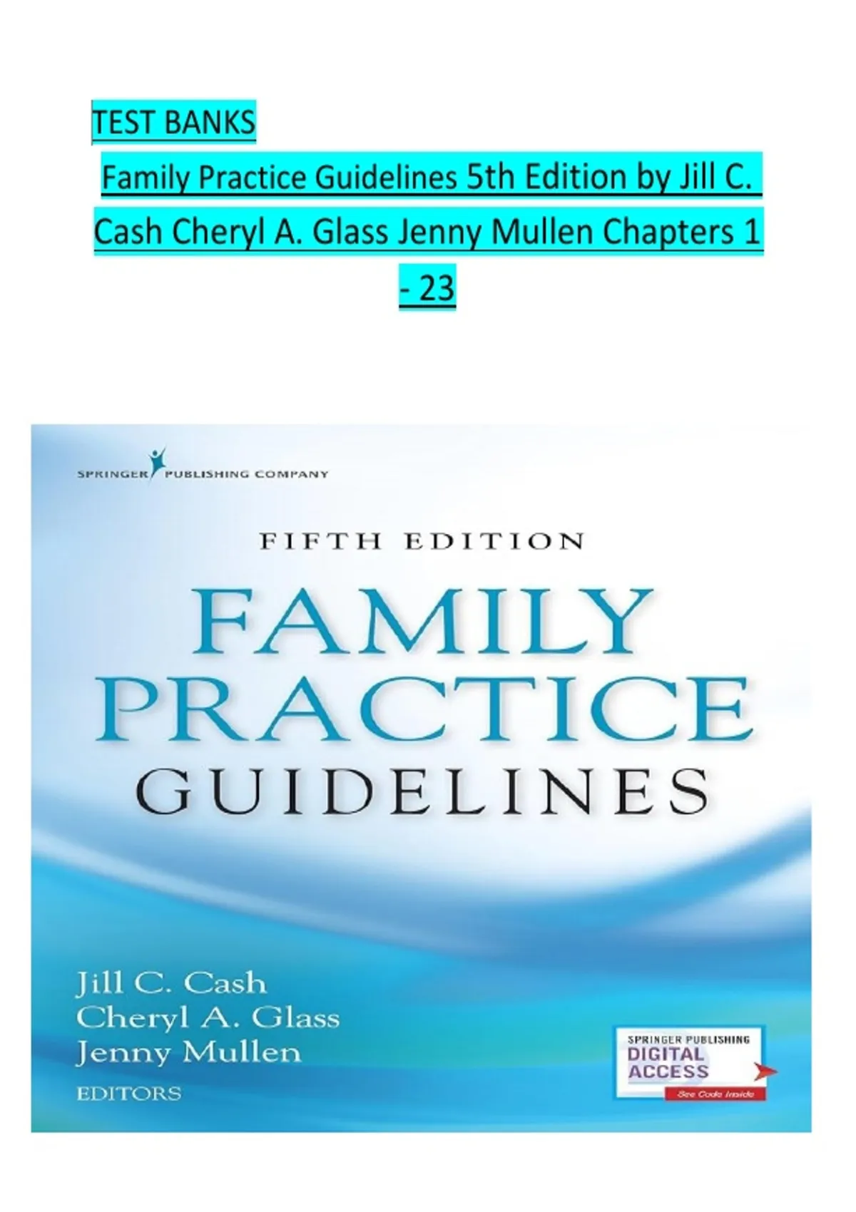 Test Bank For Family Practice Guidelines 5th Edition by Jill C. Cash, Cheryl A. Glass, ‎Jenny Mullen 9780826135834 Chapter 1-23 Complete Guide.