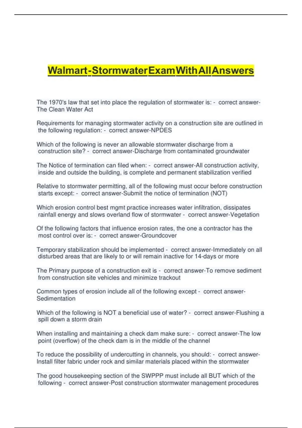 WALMART - STORMWATER EXAM WITH ALL ANSWERS.