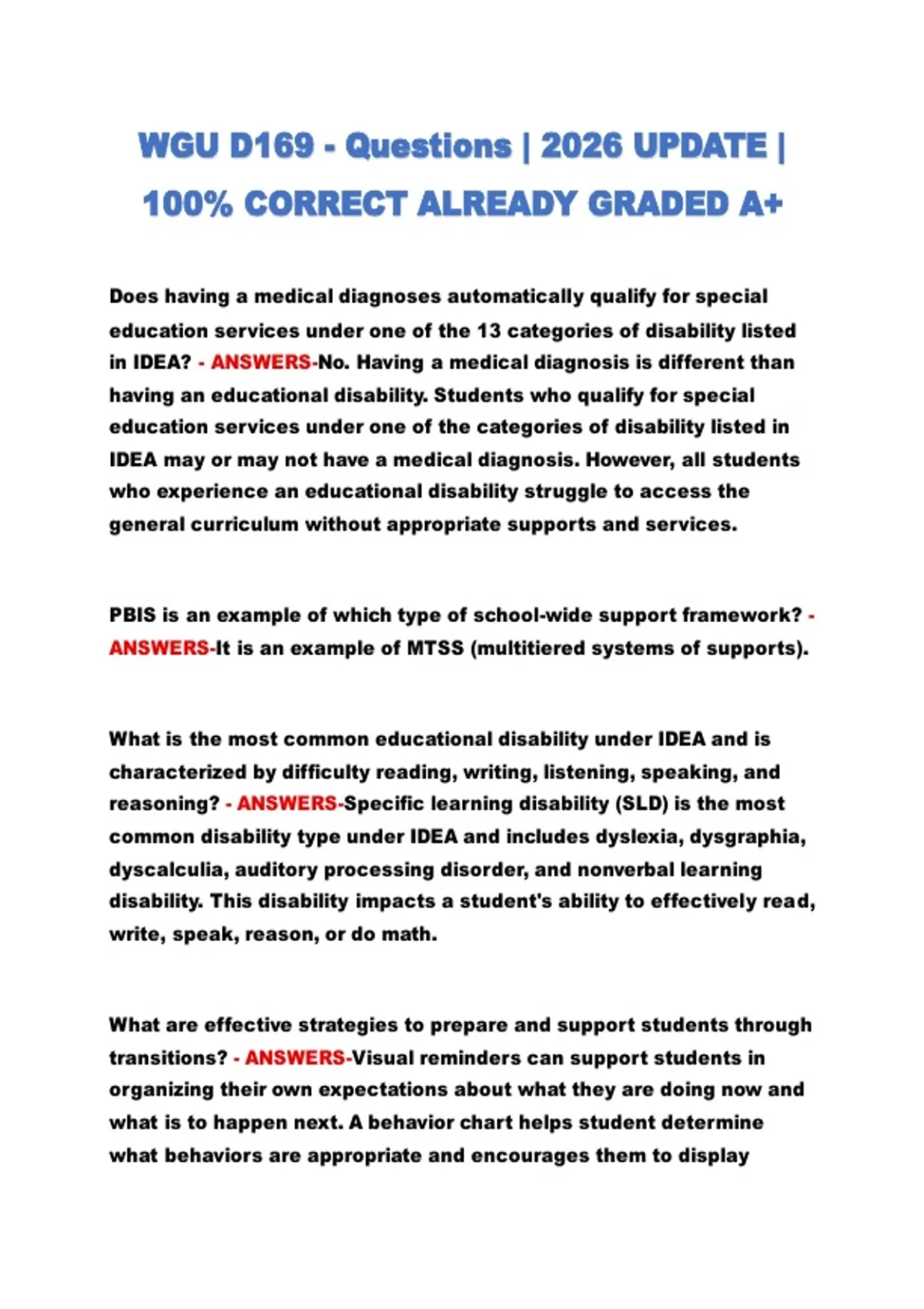 WGU D169 - Questions | 2026 UPDATE | 100% CORRECT ALREADY GRADED A+