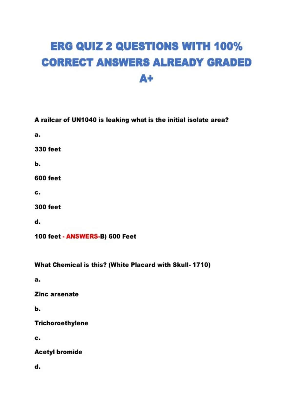 ERG QUIZ 2 QUESTIONS WITH 100%