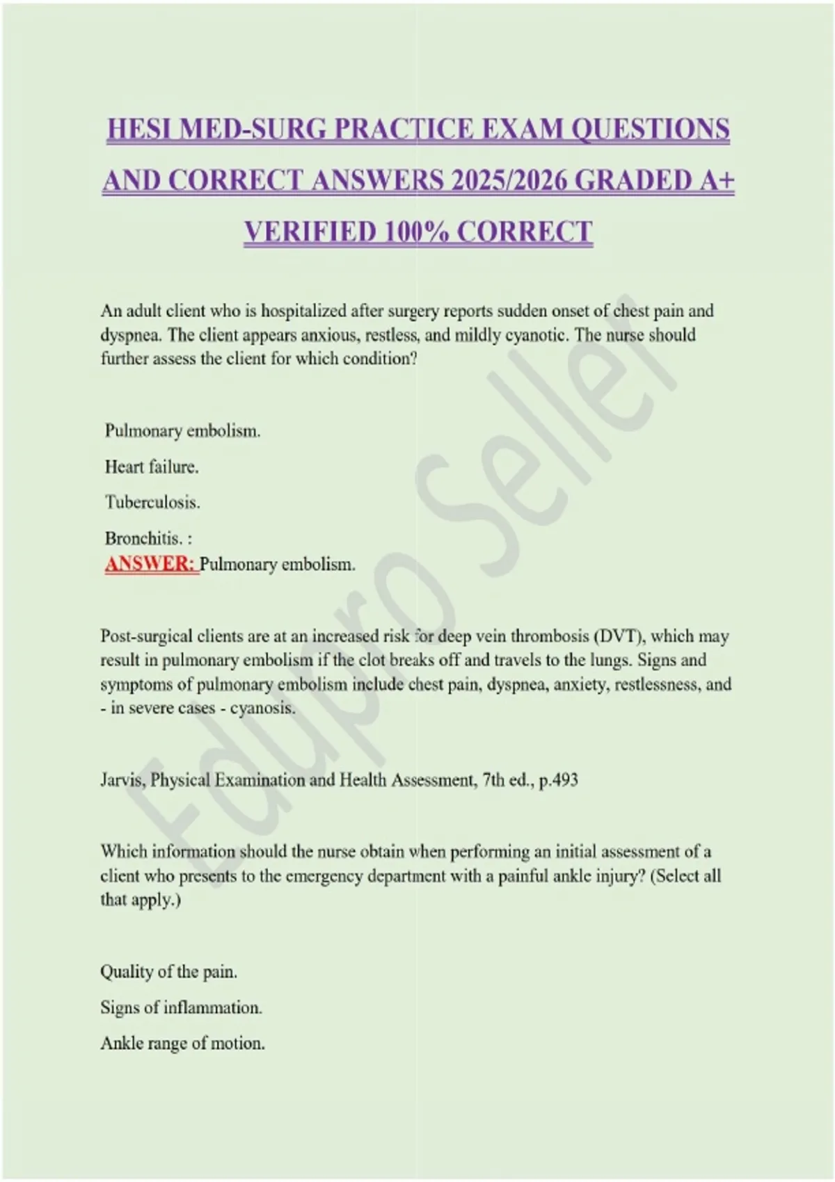 HESI MED-SURG PRACTICE EXAM QUESTIONS AND CORRECT ANSWERS 2025/2026 GRADED A+ VERIFIED 100% CORRECT