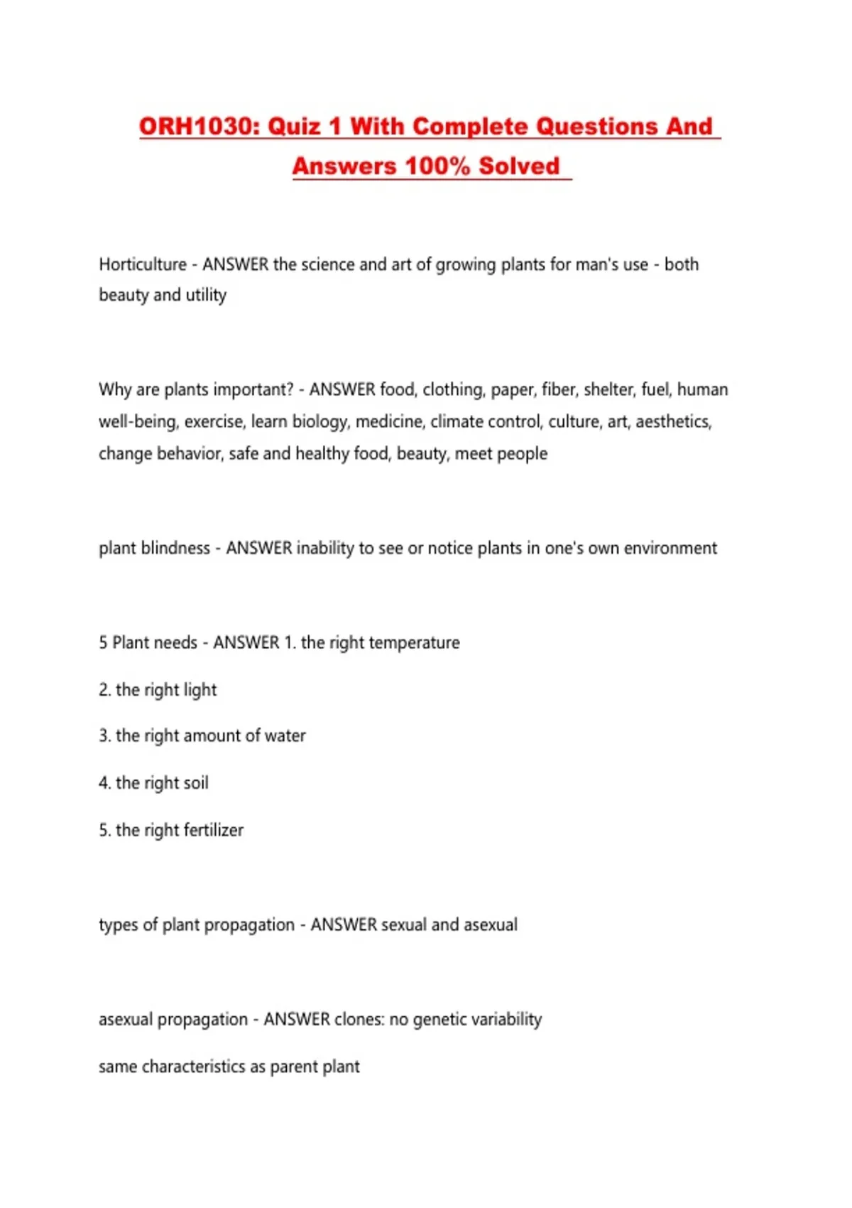 ORH1030: Quiz 1 With Complete Questions And