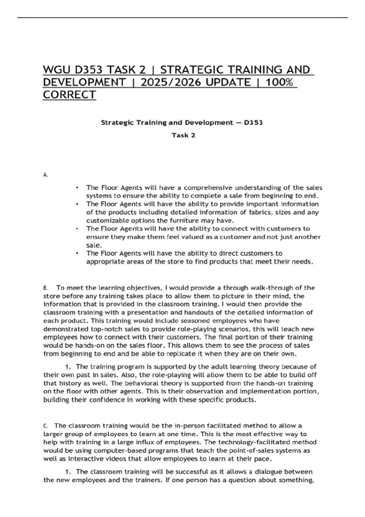 WGU D353 TASK 2 | STRATEGIC TRAINING AND DEVELOPMENT |LATEST UPDATE | 100% CORRECT