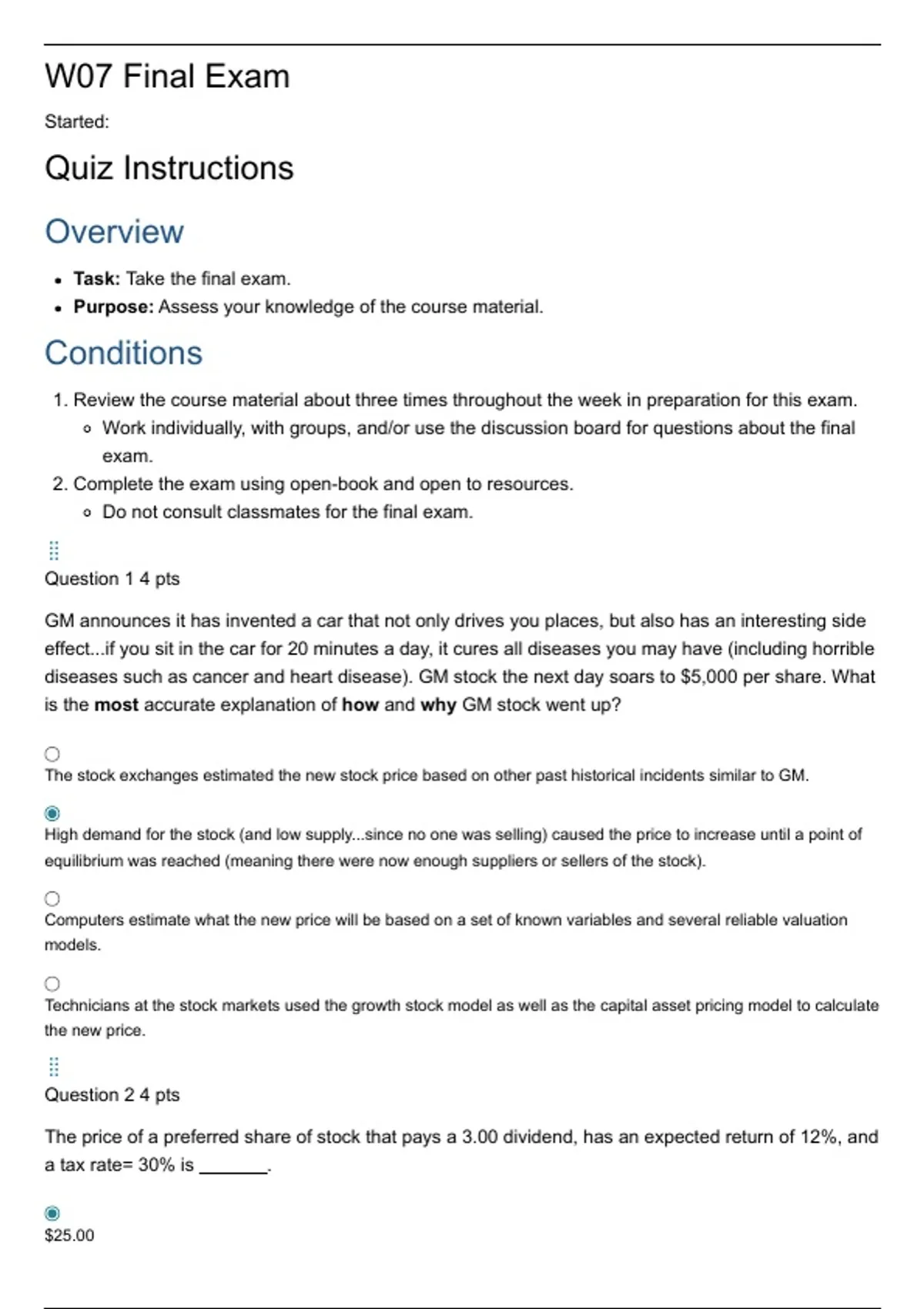 diseases such as cancer and heart disease). GM stock the next day soars to $5,000 per share. What