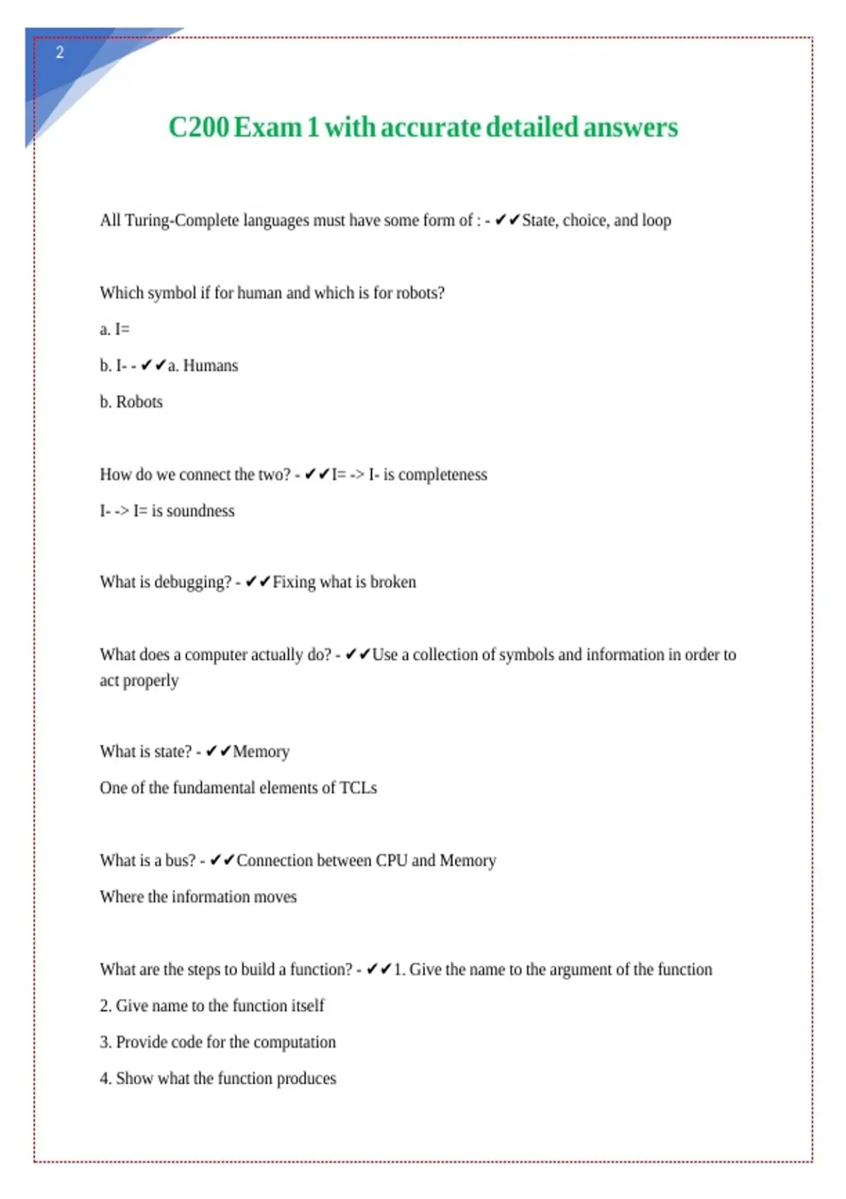 C200 Exam 1 with accurate detailed answers || || || || || ||
