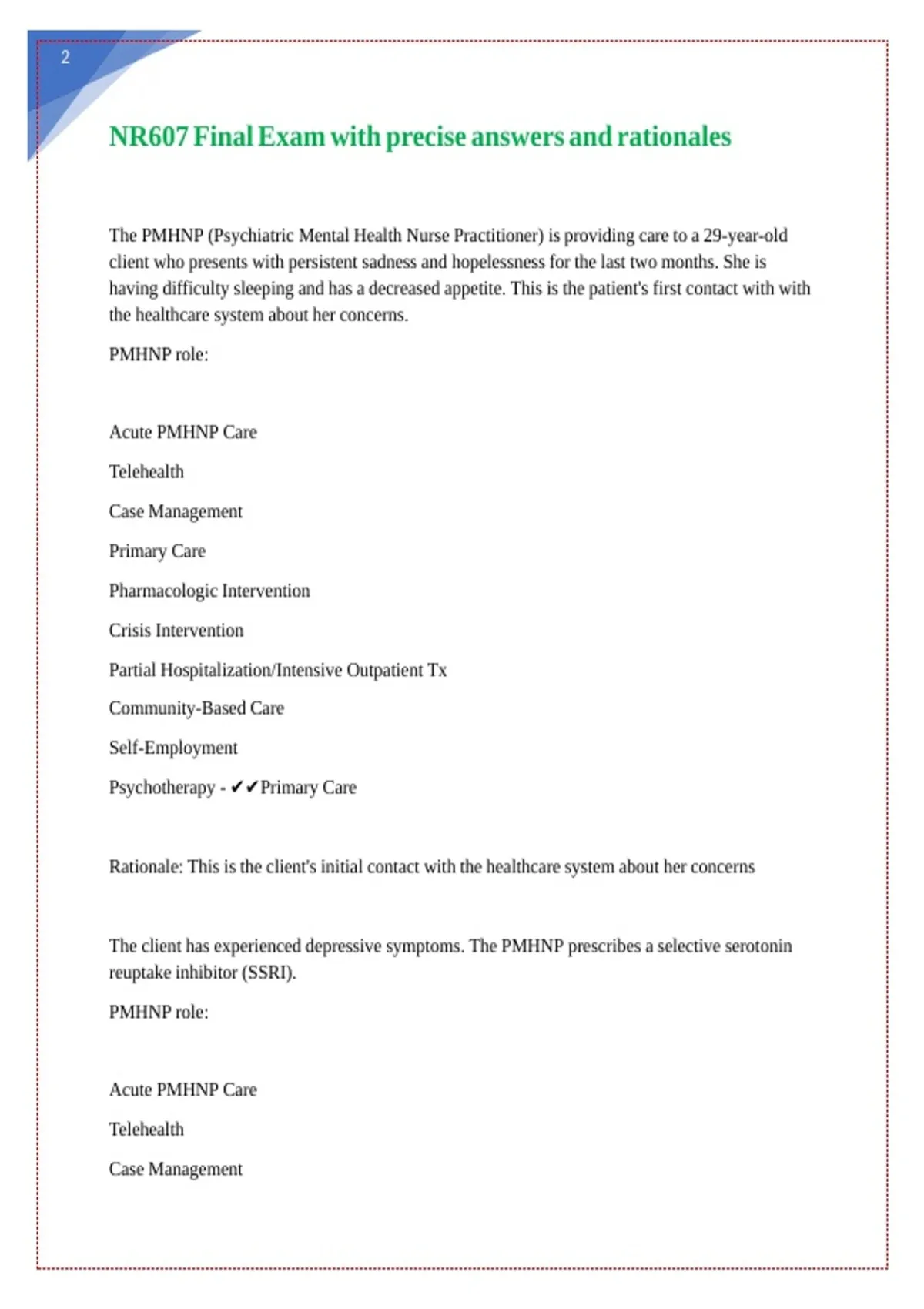 NR607 Final Exam with precise answers and rationales || || || || || || ||