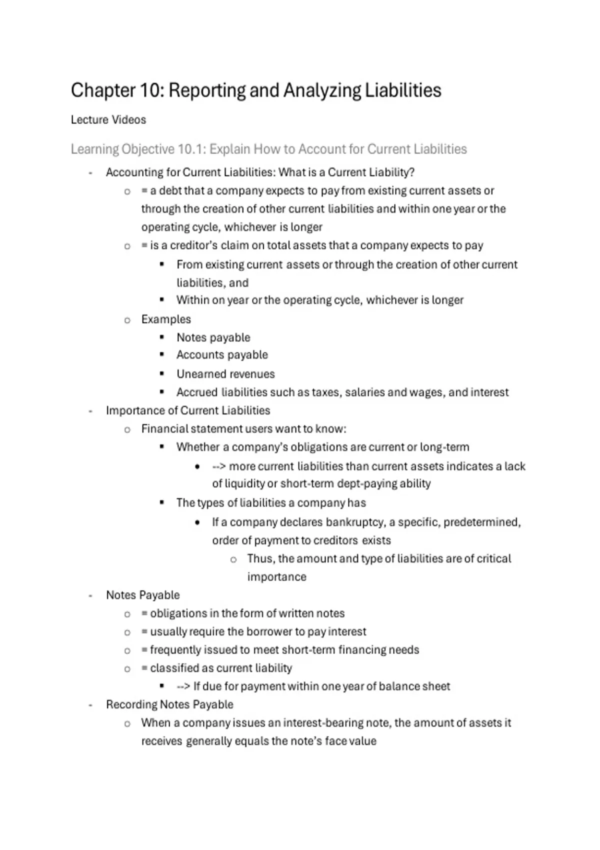 Chapter 10: Reporting and Analyzing Liabilities