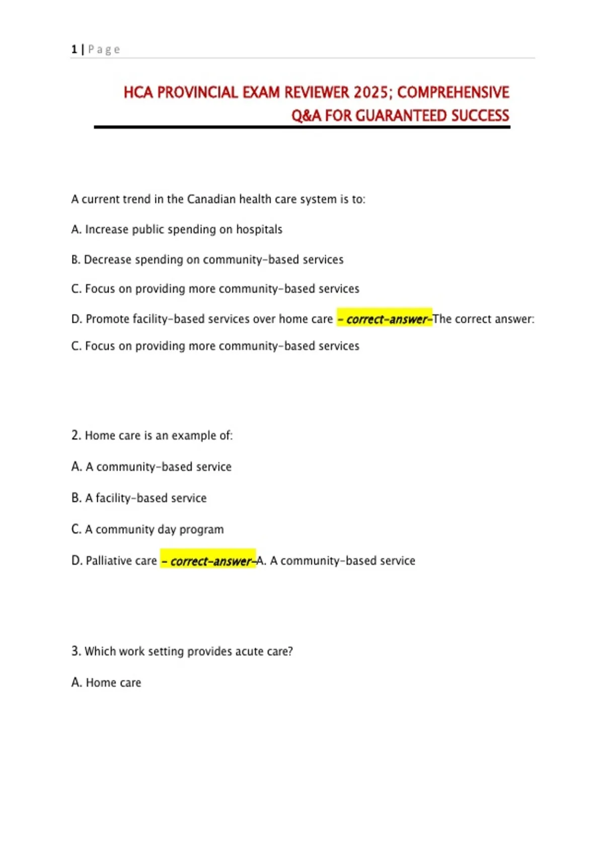The HCA Provincial Exam Reviewer 2025 provides comprehensive exam-style questions with verified correct answers to support Health Care Aide certification success. Covering personal care, infection control, patient safety, communication, ethics, legal responsibilities, documentation, and professional practice, this reviewer strengthens core competencies, improves exam readiness, and builds confidence for passing the HCA provincial certification examination on the first attempt.