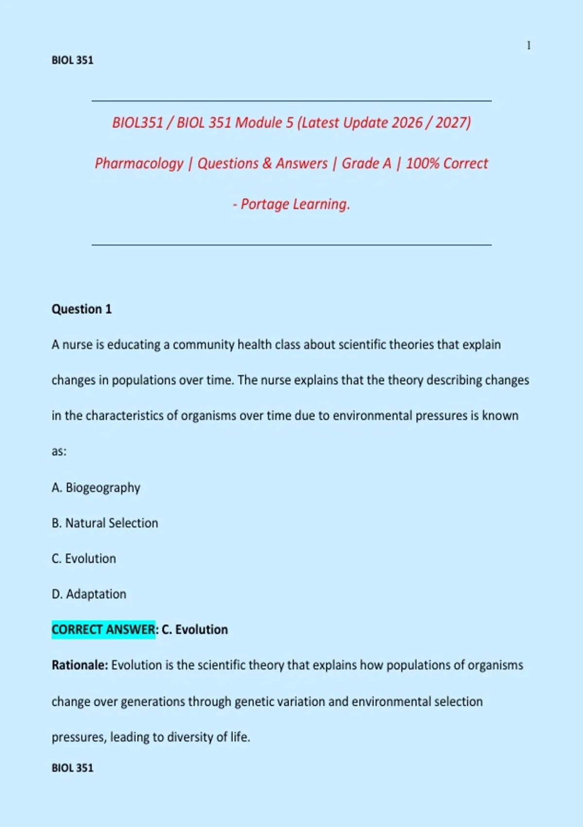 BIOL351 / BIOL 351 Module 5 (Latest Update )