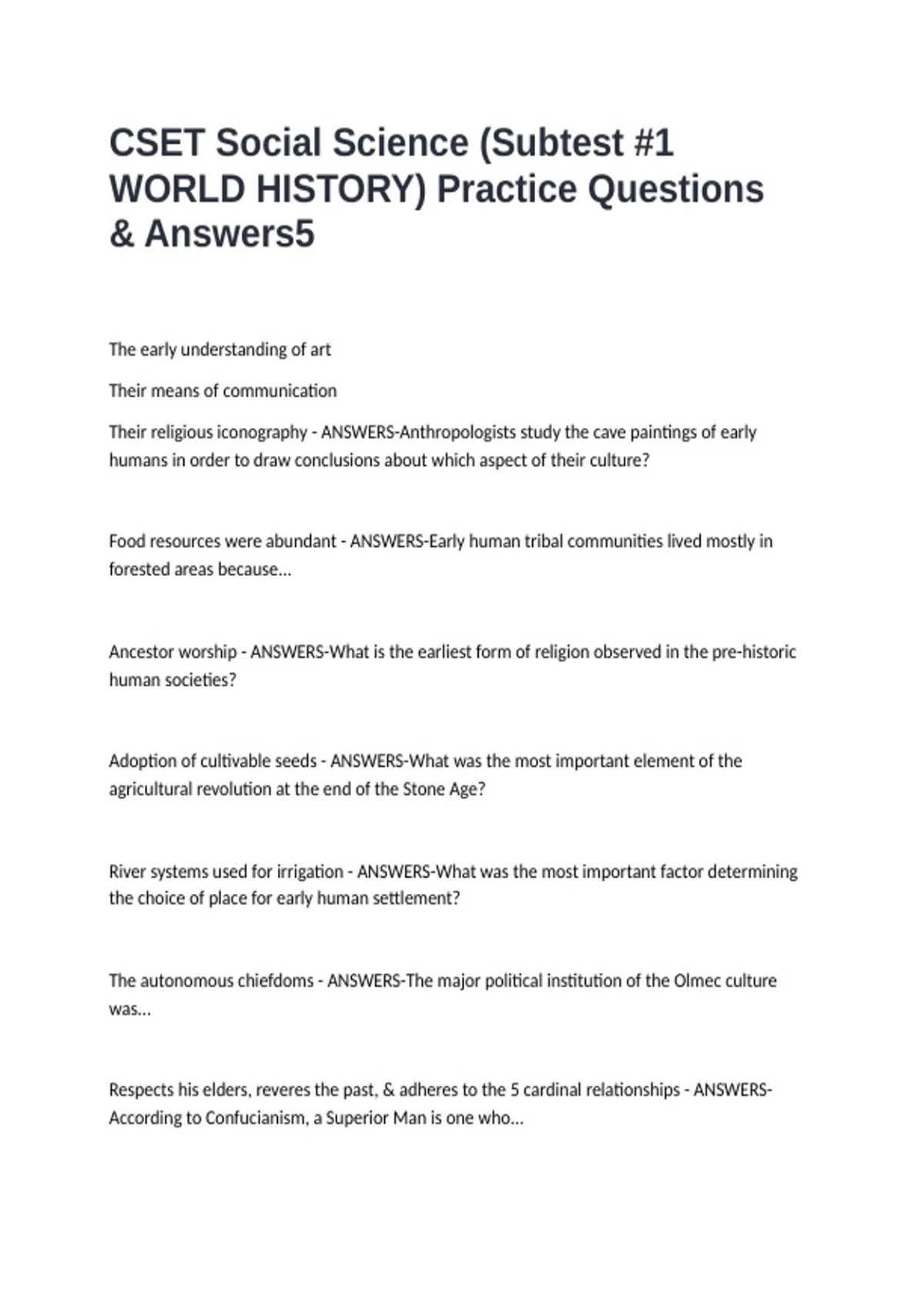 WORLD HISTORY) Practice Questions