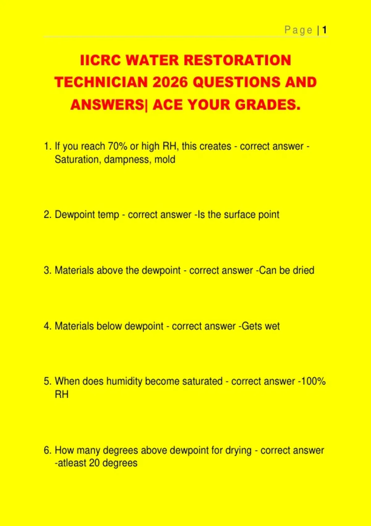 1. If you reach 70% or high RH, this creates - correct answer -