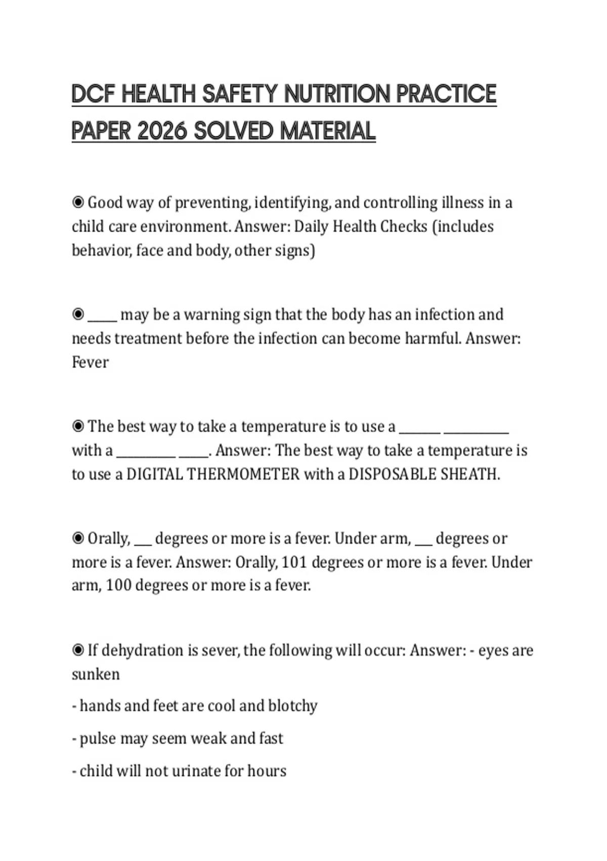 ◉ If dehydration is sever, the following will occur: Answer: - eyes are