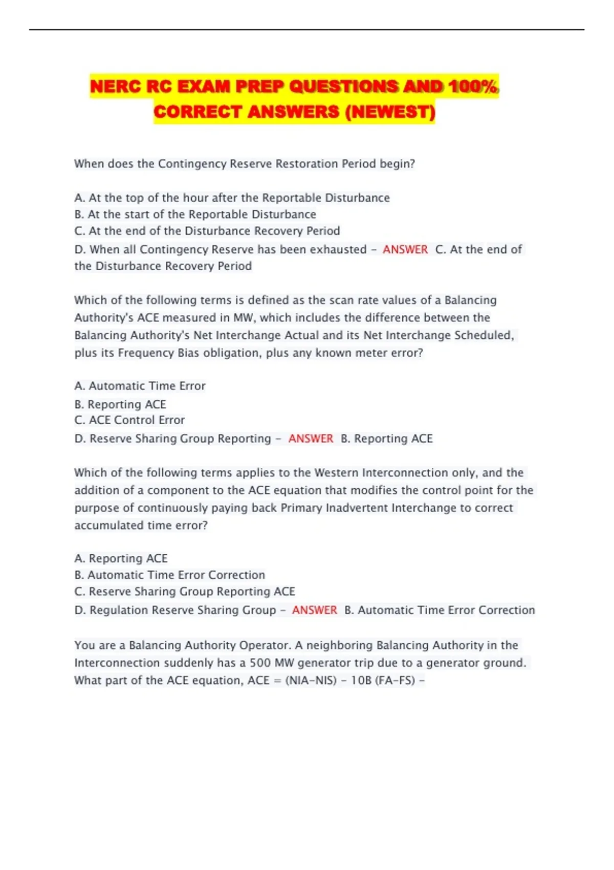 NERC RC EXAM PREP QUESTIONS AND 100%