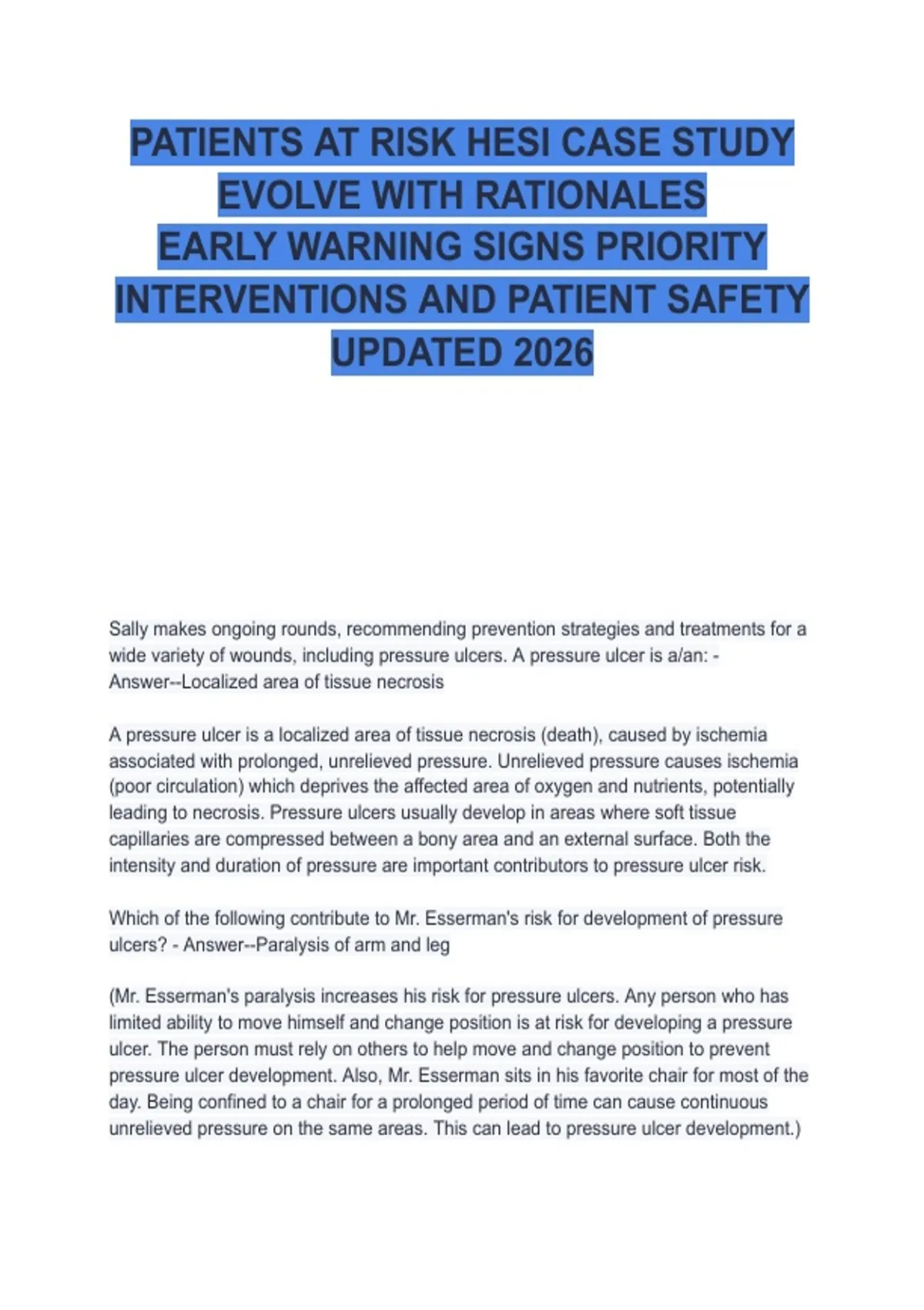 PATIENTS AT RISK HESI CASE STUDY EVOLVE WITH RATIONALES EARLY WARNING SIGNS PRIORITY INTERVENTIONS AND PATIENT SAFETY UPDATED 2026