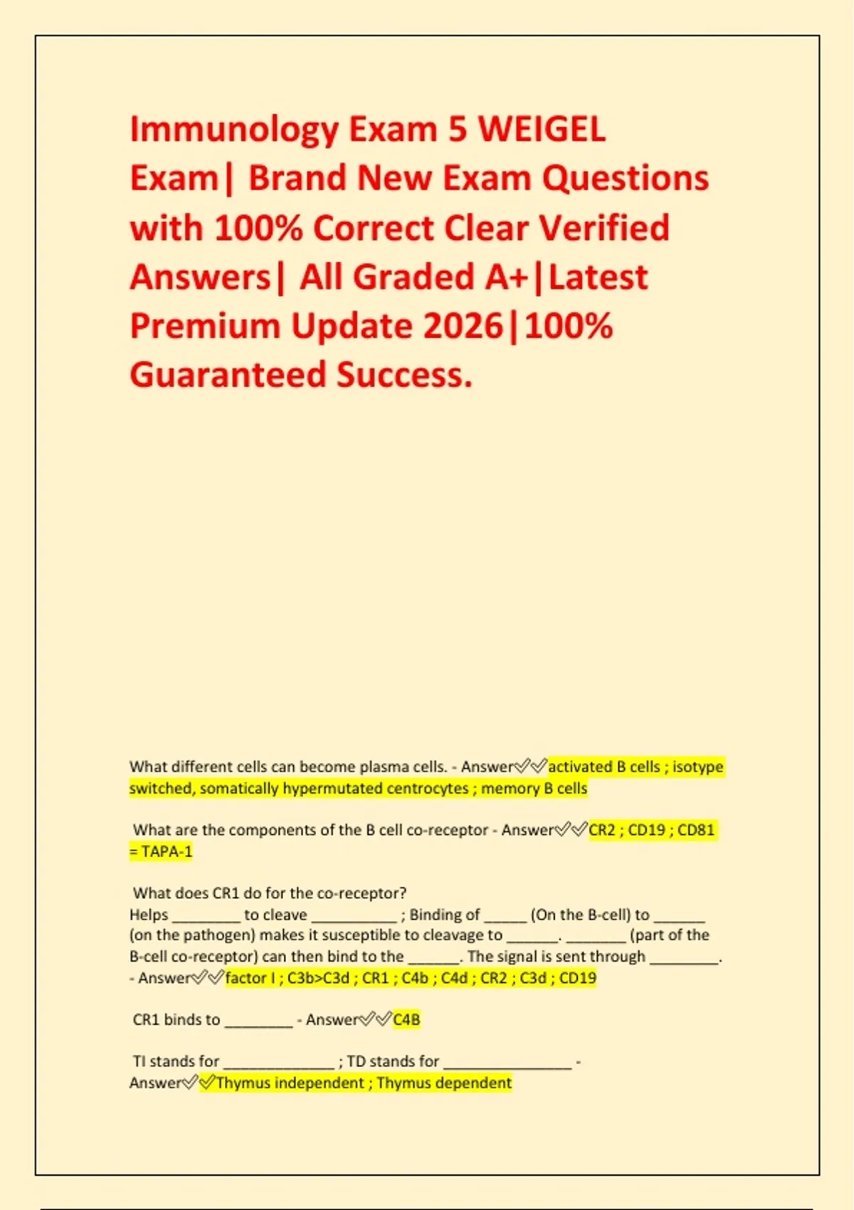 - Answer✅✅factor I ; C3b>C3d ; CR1 ; C4b ; C4d ; CR2 ; C3d ; CD19