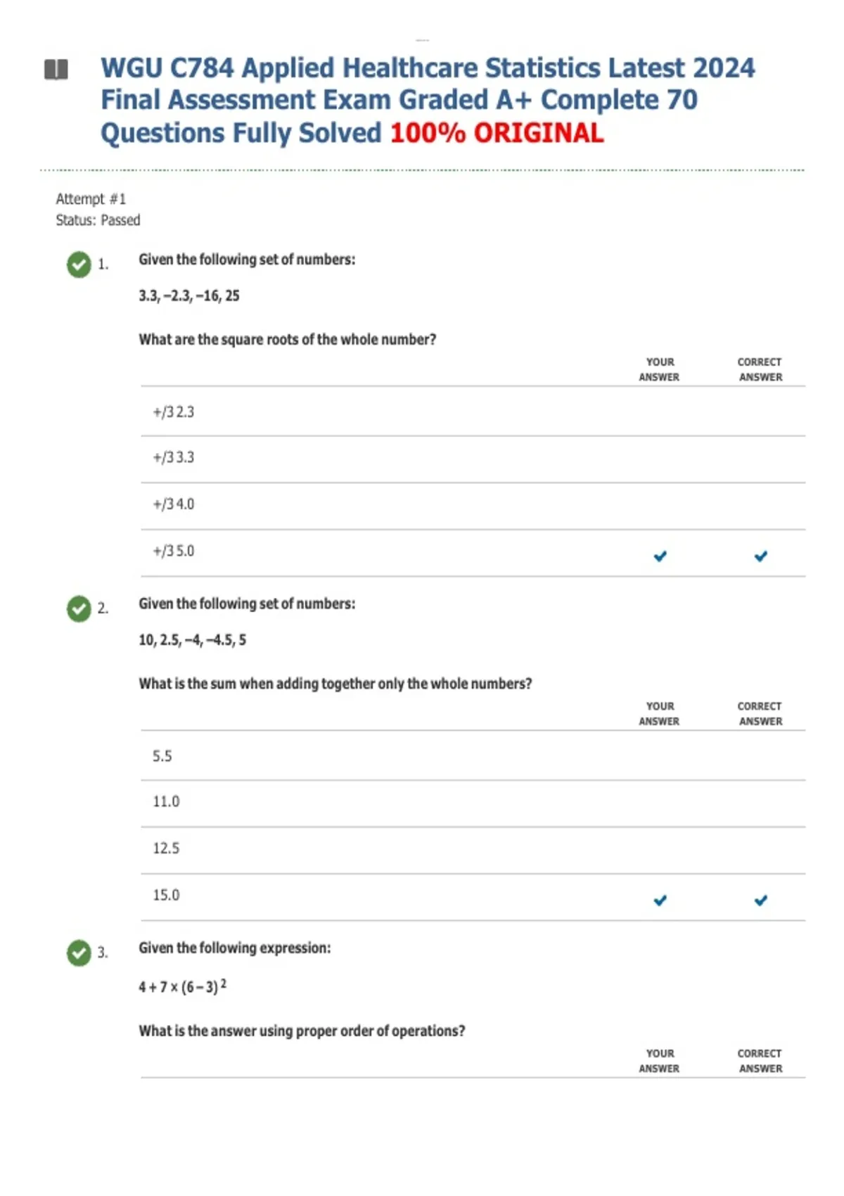 WGU C784 Applied Healthcare Statistics Latest 2024