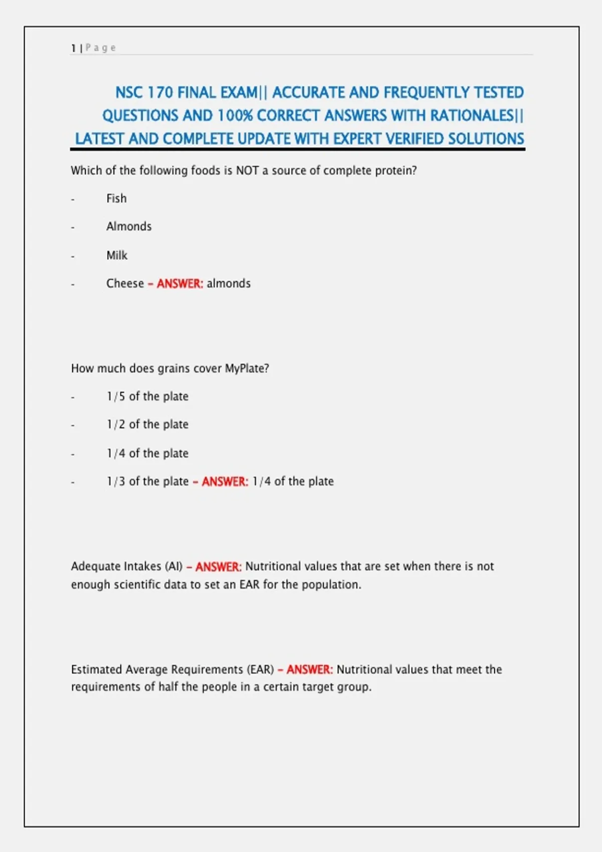 NSC 170 FINAL EXAM|| ACCURATE AND FREQUENTLY TESTED