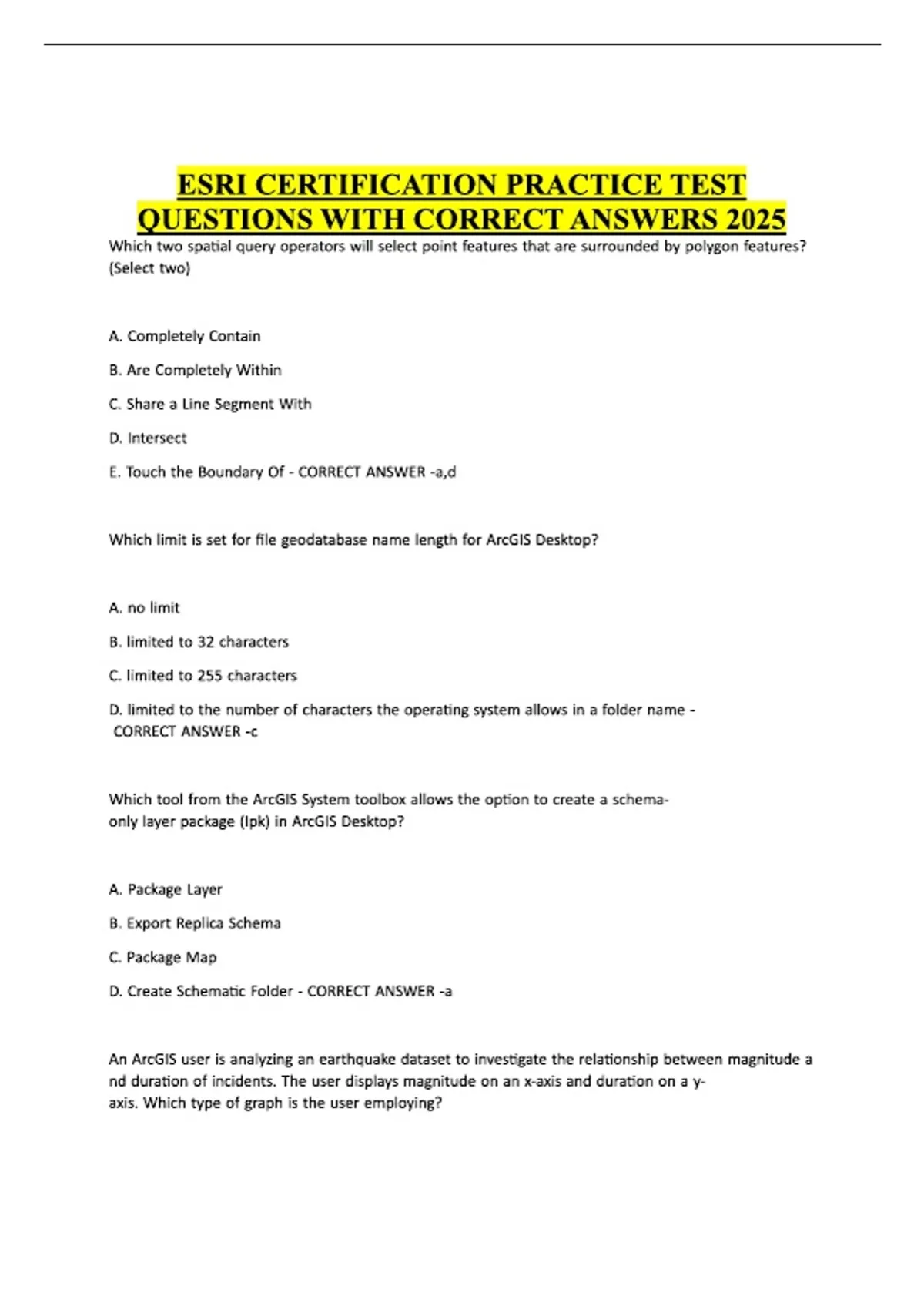 ESRI CERTIFICATION PRACTICE TEST QUESTIONS WITH CORRECT ANSWERS