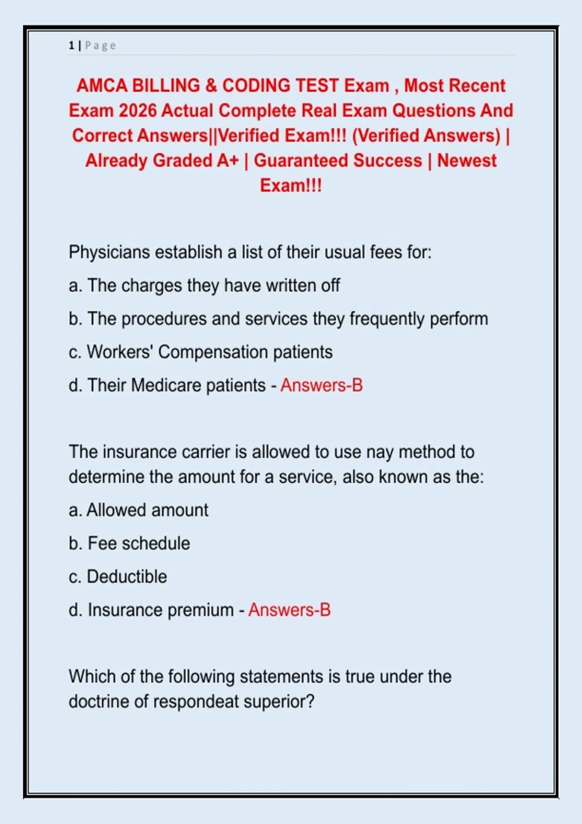 AMCA BILLING & CODING TEST Exam , Most Recent Exam 2026 Actual Complete Real Exam Questions And Correct Answers||Verified Exam!!! (Verified Answers) | Already Graded A+ | Guaranteed Success | Newest Exam!!!