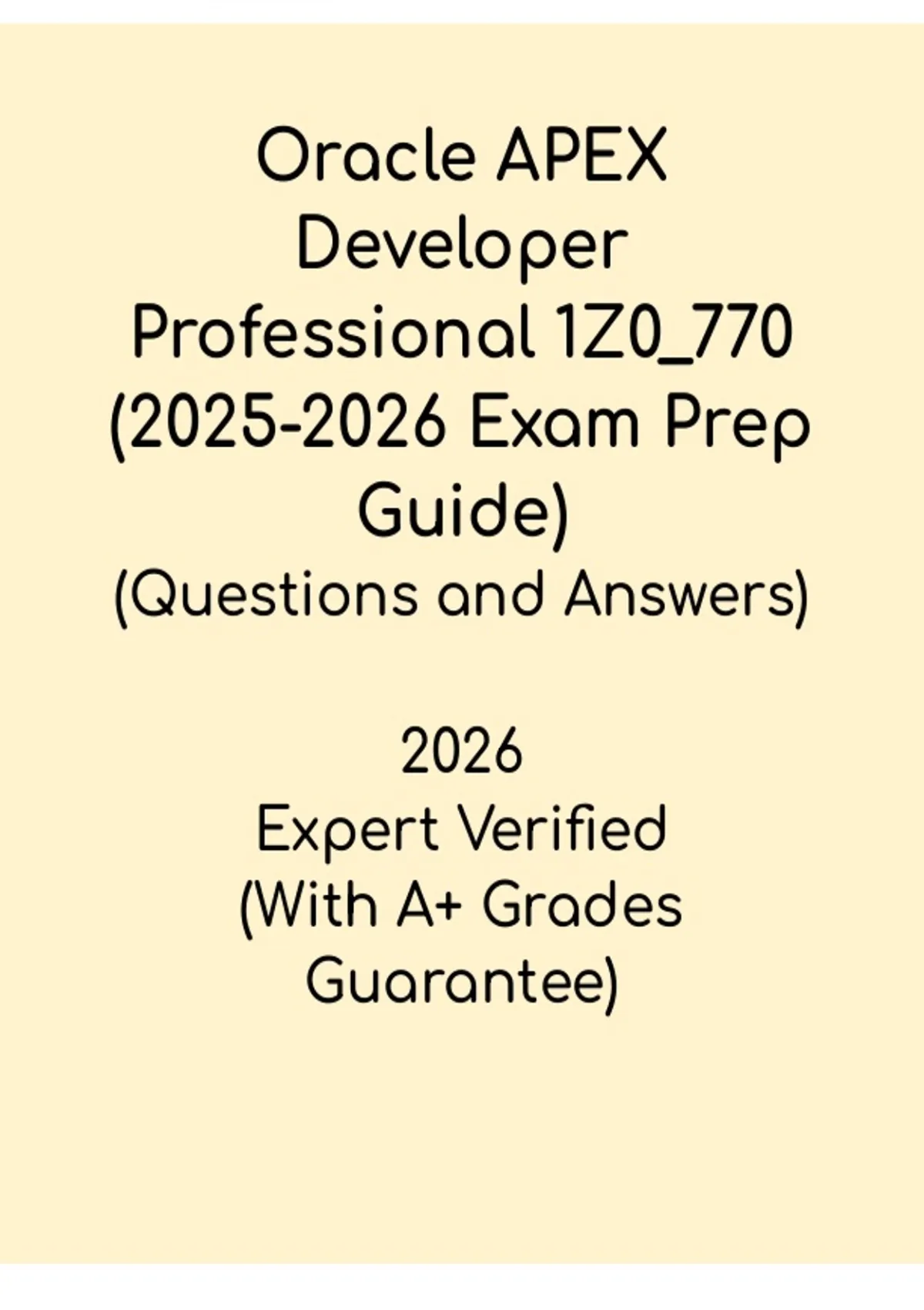 This Oracle APEX Developer Professional 1Z0-770 Exam Prep Guide PDF (2025–2026) is a comprehensive and exam-focused study resource designed to help developers prepare confidently for the Oracle APEX certification, covering core topics such as APEX architecture, application development, SQL and PL/SQL integration, security, data modeling, reporting, forms, deployment, and performance best practices, with clear explanations, structured summaries, and exam-relevant insights to support efficient revision and first-time exam success.
