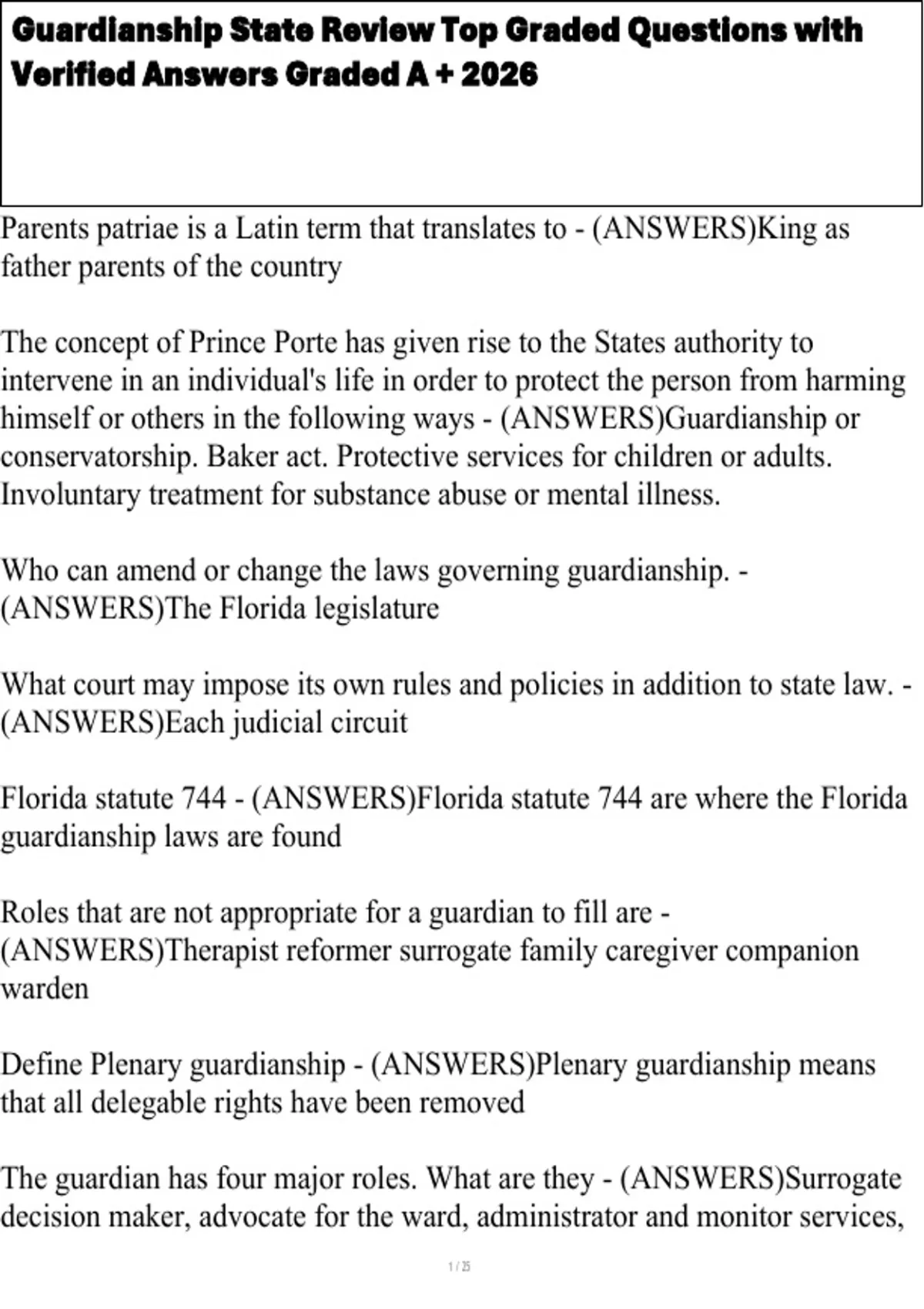 Guardianship State Review Top Graded Questions with Verified Answers Graded A + 2026