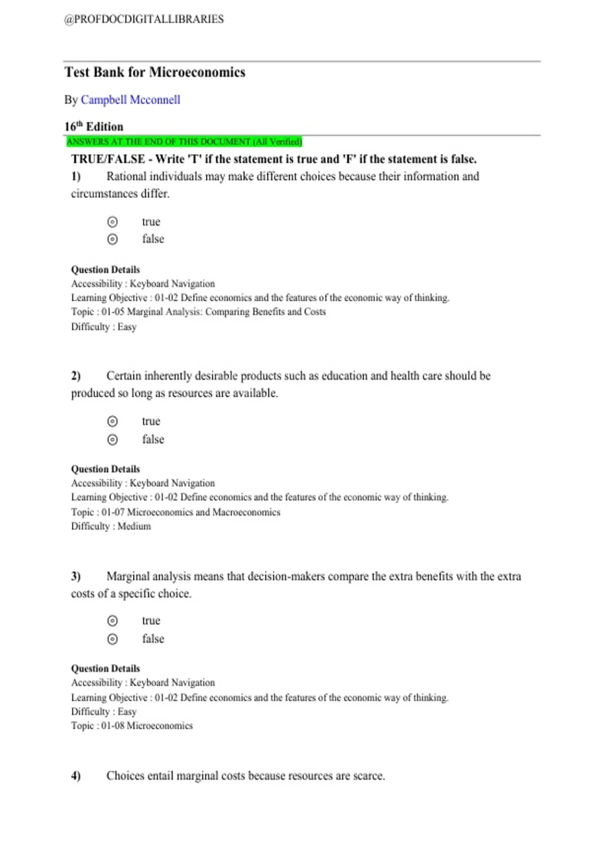 Test Bank for Microeconomics