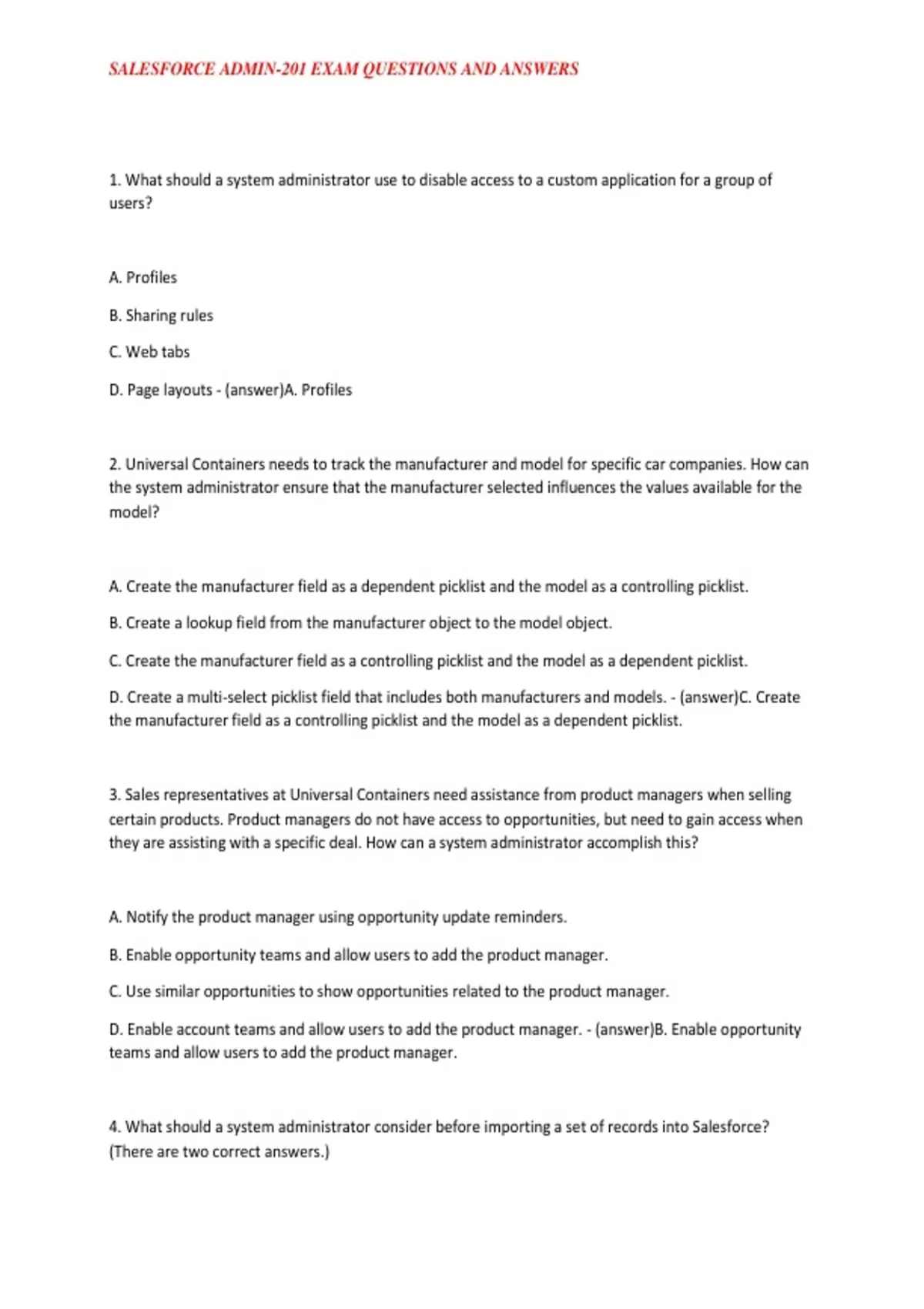 , SALESFORCE ADMIN-201 EXAM QUESTIONS AND ANSWERS