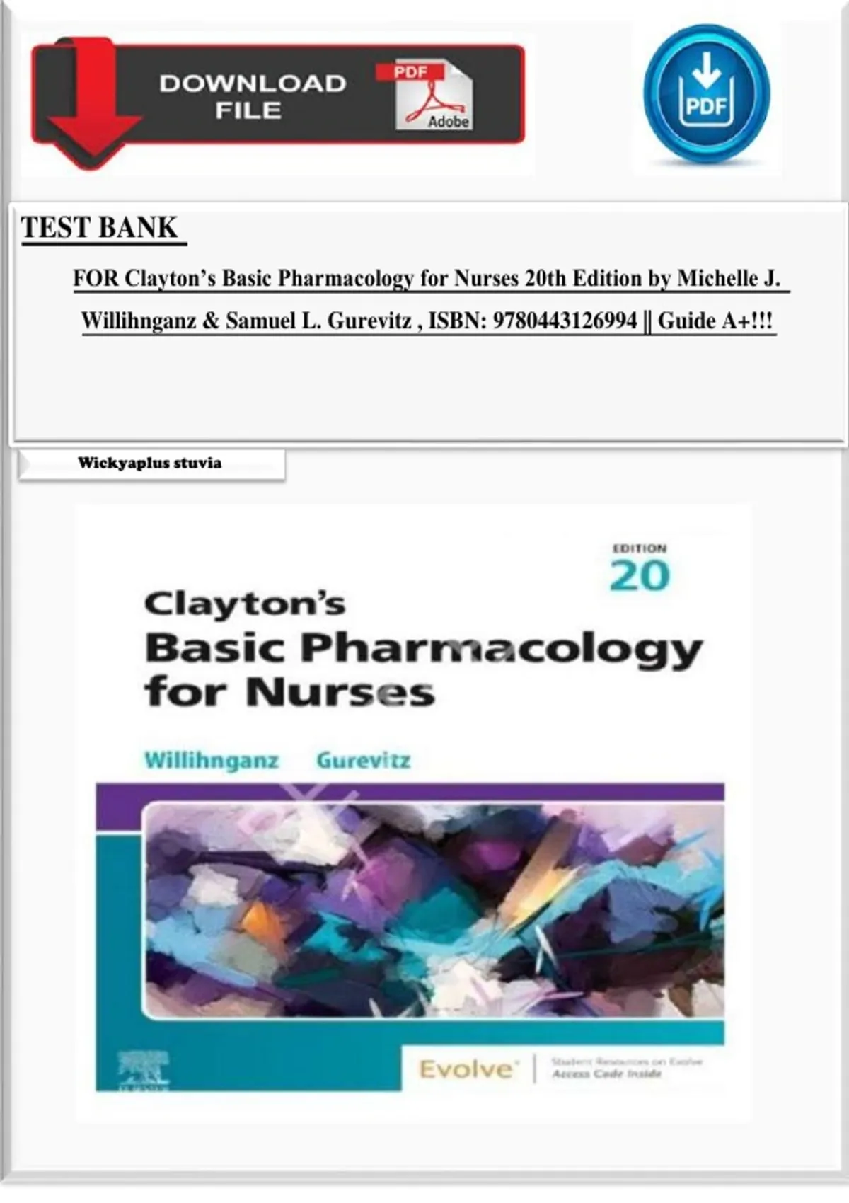 TEST BANK FOR Clayton’s Basic Pharmacology for Nurses 20th Edition by Michelle J. Willihnganz & Samuel L. Gurevitz , ISBN: 9780443126994 || Guide A+!!!!
