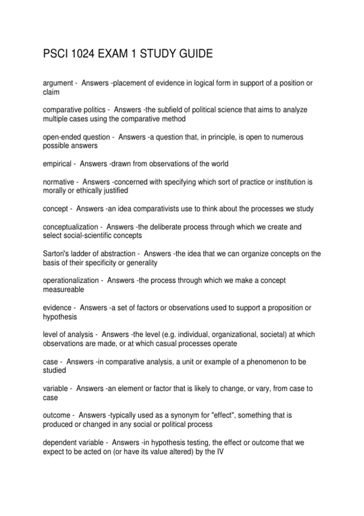 PSCI 1024 EXAM 1 STUDY GUIDE
