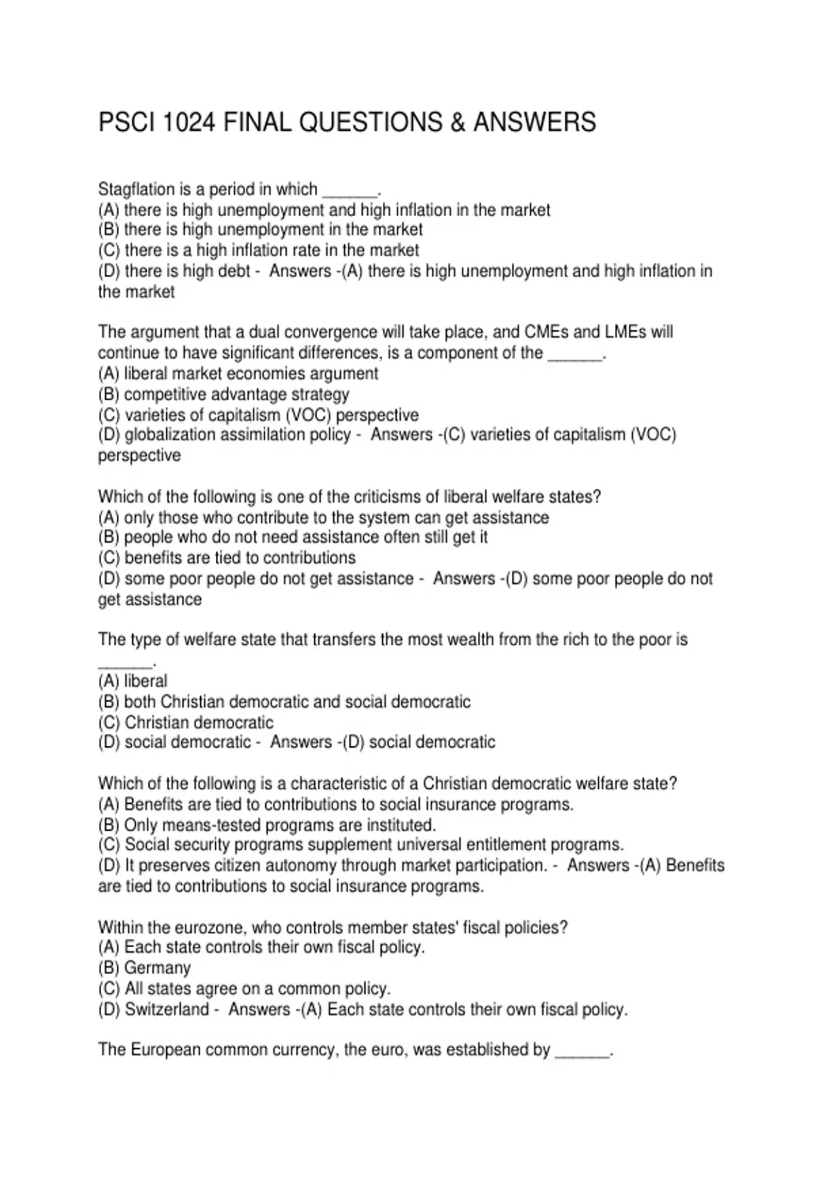 PSCI 1024 FINAL QUESTIONS & ANSWERS
