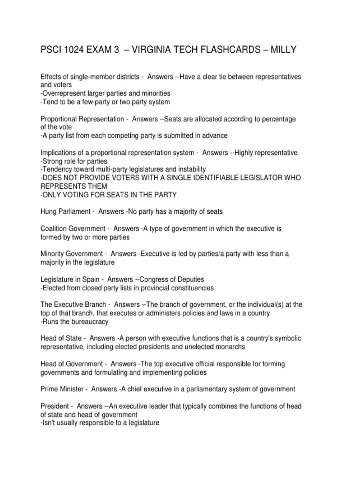 PSCI 1024 EXAM 3 – VIRGINIA TECH FLASHCARDS – MILLY