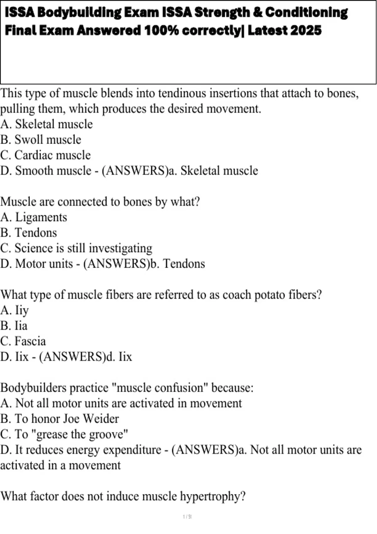 , ISSA Bodybuilding Exam ISSA Strength & Conditioning
