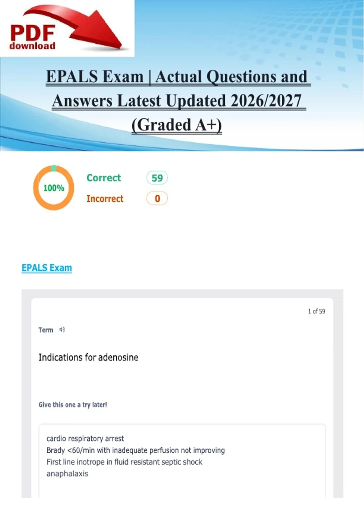 EPALS Exam | Actual Questions and Answers Latest Updated 2026/2027 (Graded A+)